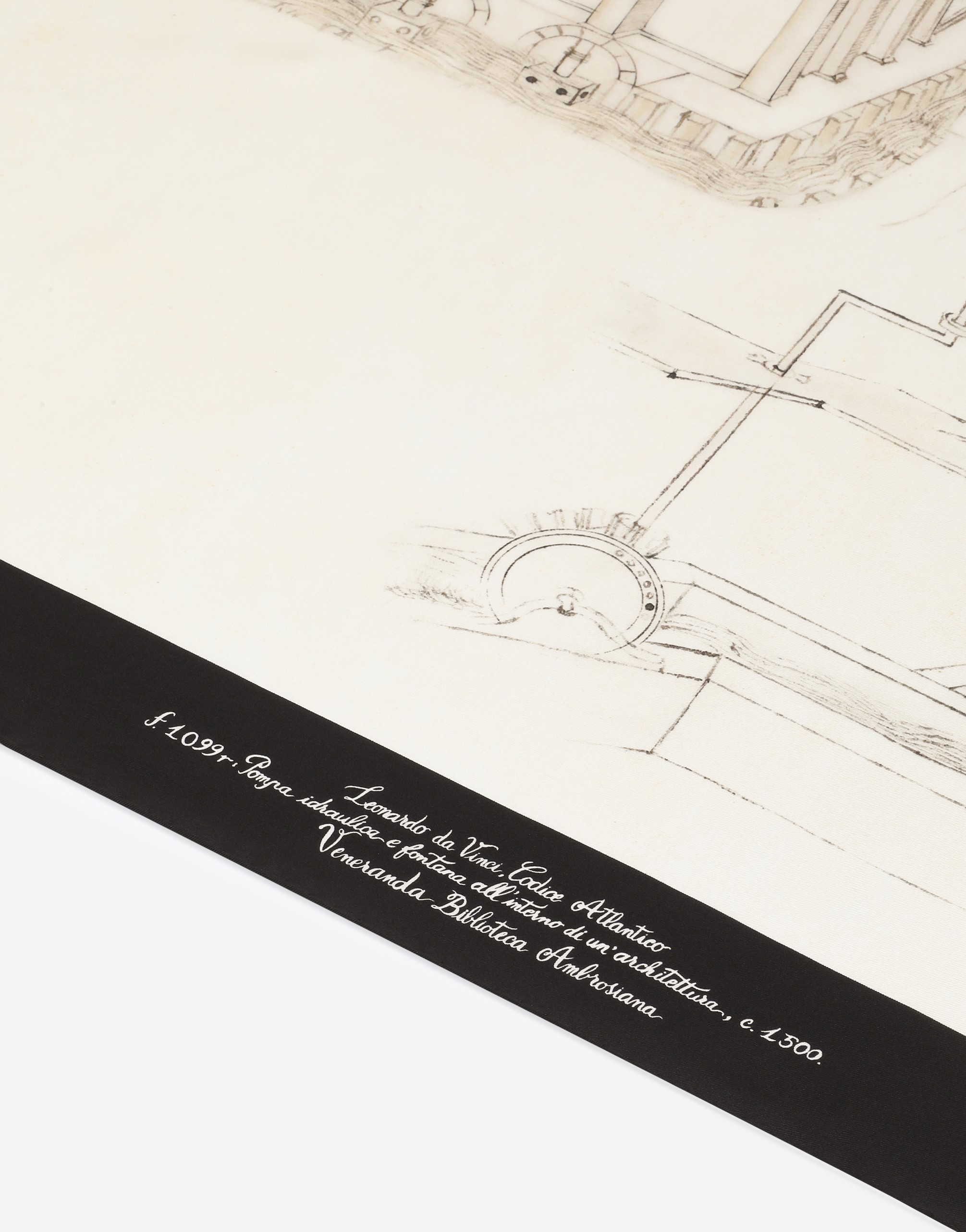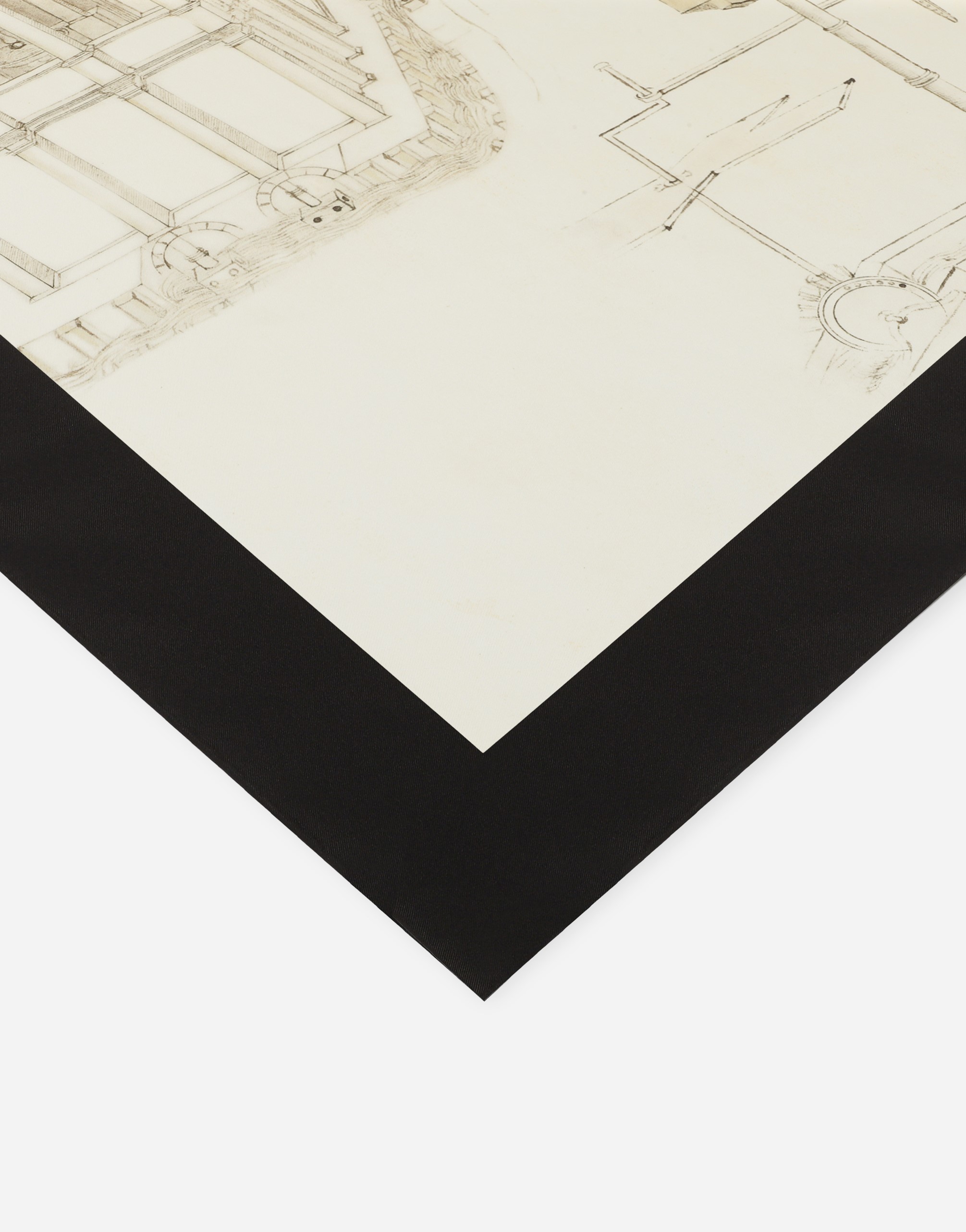 Foulard in silk twill printed with Leonardo Da Vinci’s drawings, refined with hand-rolled edge. Dolce&Gabbana Alta Sartoria, unique piece