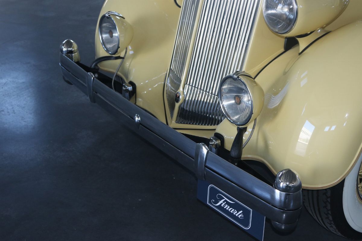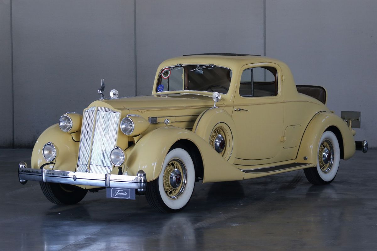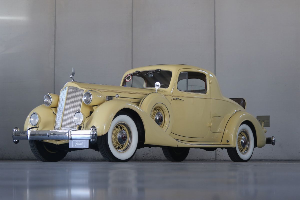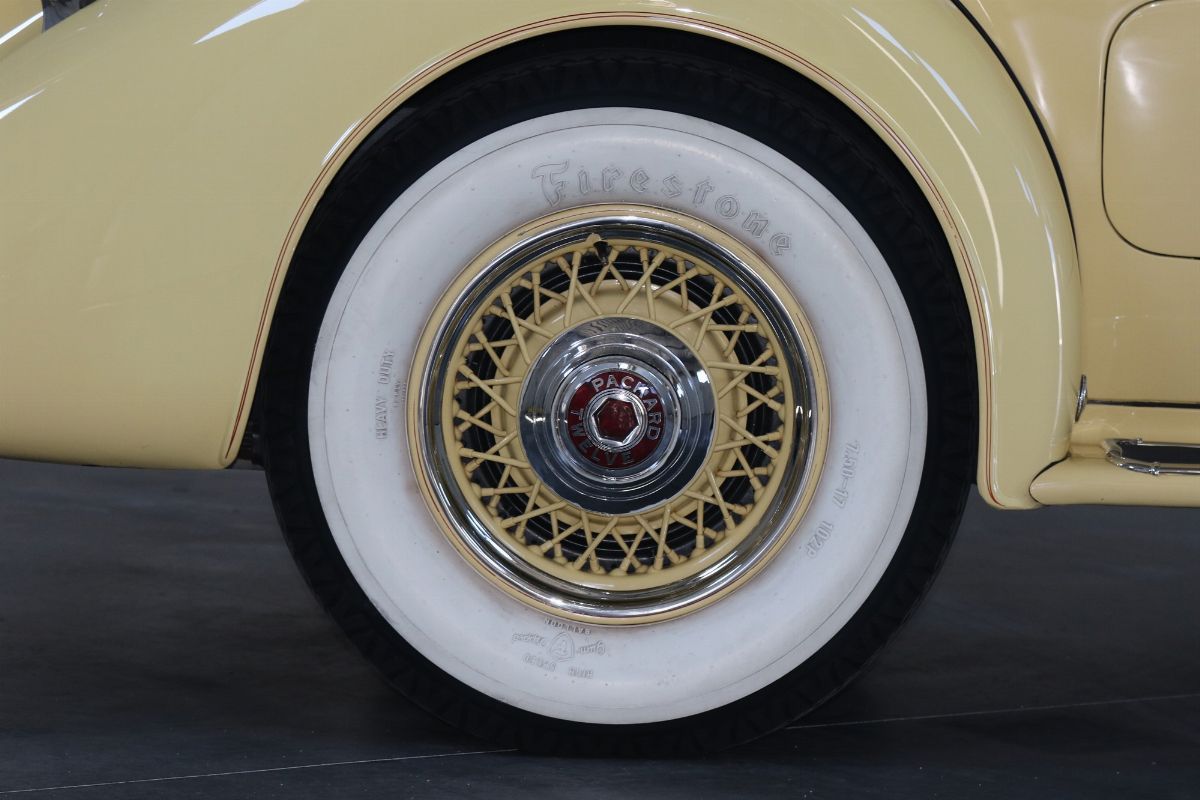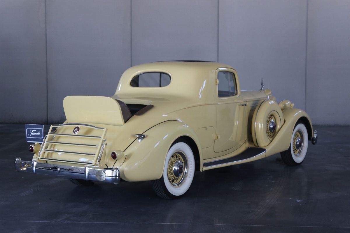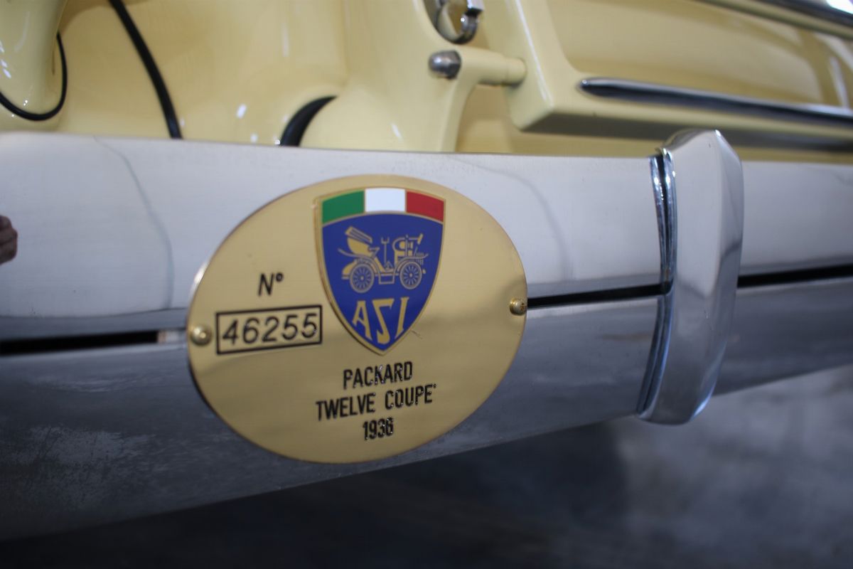 The Packard Twelve was a range of V12-engined luxury automobiles built by the Packard Motor Car Company in Detroit, Michigan. The car was built from model year 1933 until 1939 as a successor to the twelve-cylinder Twin Six. As a sign of changing times, the majority of Packard Twelves received standard bodywork, with custom bodywork gradually losing favor. The famous automotive historian Beverly Rae Kimes described the Packard Twelves of the 1930s as “the ultimate in conveyances to emanate from East Grand Boulevard” (Packard’s historic headquarters and factory). Although Packard had produced a fine, earlier twelve-cylinder car known as the ‘Twin Six’, the Packard Twelve offered from 1933 through 1939 became one of the most esteemed automobiles of the Classic Era. Introduction of the Packard Twelve came about as a result of marketing need and engineering development. Since Cadillac introduced a V-16 engine at the 1930 New York Auto Show, rasing the bar for luxury cars, the other manufacturers had to give an adequate response. Packard’s new V-12 was already in development by Indianapolis champion Tommy Milton and Cornelius Van Ranst for a front-wheel drive Packard, after the experience had for the Cord L-29. The FWD project was stillborn, but Milton and Van Ranst were paid $ 10,000 for development of the V-12 engine that quickly found its way into a new Packard model built on the long wheelbase Deluxe chassis. Packard’s legendary chief engineer Jesse Vincent brought an ongoing series of developments to the new Twelve engine and chassis. By Packard’s 14th Series in 1936, the 473 c.i.d. (7756 cc) V-12 produced 175 hp, only 10 hp less than Cadillac’s V-16. The engine was matched with a three-speed selective synchromesh manual transmission. Mechanical–vacuum assisted brakes on all four wheels were standard, as well as wire wheels. The 14th Series of 1936 was largely unchanged from the 12th (there was no 13th Series). The only differences were a radiator angled by five more degrees, the oil temperature regulator was redesigned. Despite dwindling sales in the Depression years, the Twelve was offered in fifteen factory body styles in 1936 on long 139 in. and 144 in. chassis. Production of 1936 Packard Twelves totaled only 682 cars. The Twelve coupe was one of the more exclusive body styles offered, designed for the gentleman, or woman, who desired to drive and enjoy the power of the V-12 engine for themselves.