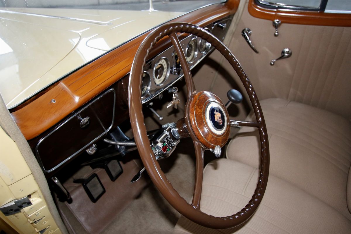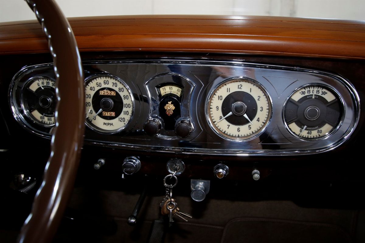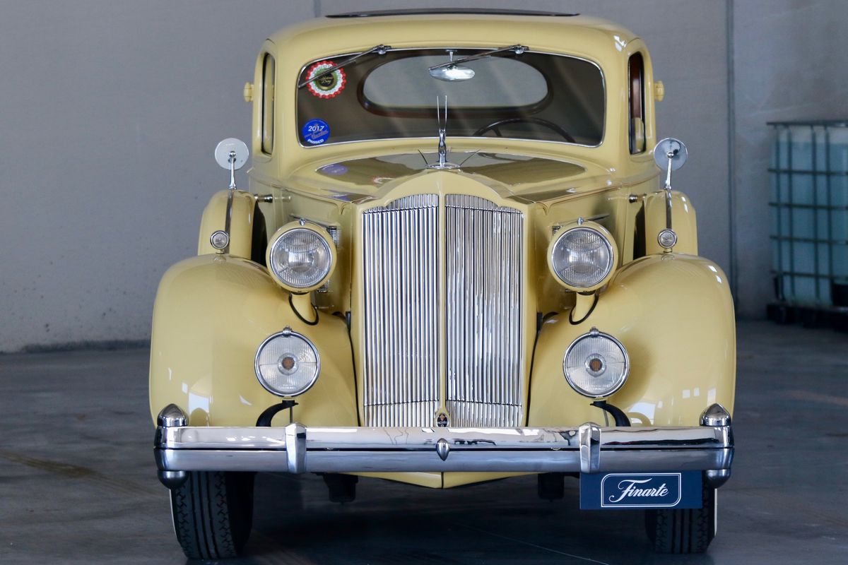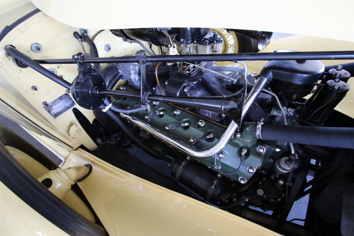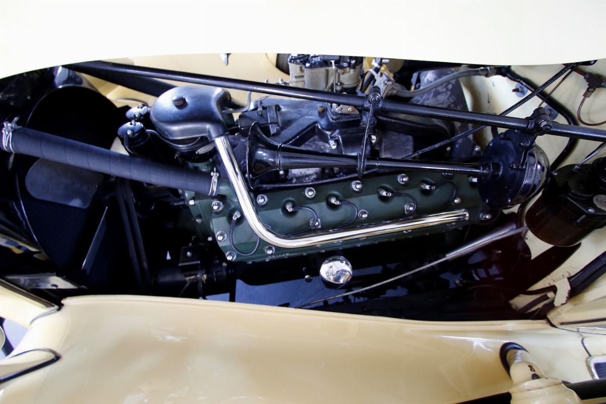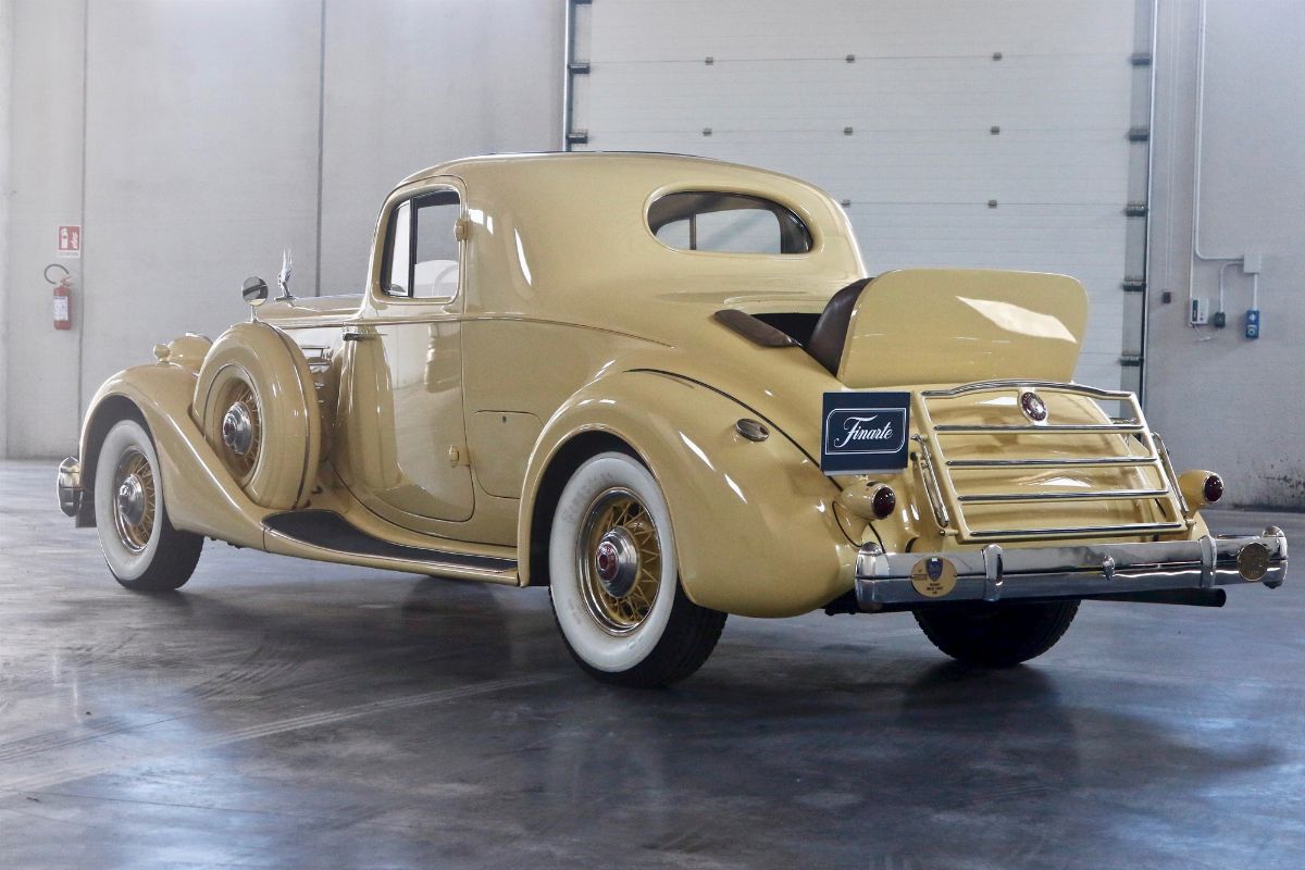 The Packard Twelve was a range of V12-engined luxury automobiles built by the Packard Motor Car Company in Detroit, Michigan. The car was built from model year 1933 until 1939 as a successor to the twelve-cylinder Twin Six. As a sign of changing times, the majority of Packard Twelves received standard bodywork, with custom bodywork gradually losing favor. The famous automotive historian Beverly Rae Kimes described the Packard Twelves of the 1930s as “the ultimate in conveyances to emanate from East Grand Boulevard” (Packard’s historic headquarters and factory). Although Packard had produced a fine, earlier twelve-cylinder car known as the ‘Twin Six’, the Packard Twelve offered from 1933 through 1939 became one of the most esteemed automobiles of the Classic Era. Introduction of the Packard Twelve came about as a result of marketing need and engineering development. Since Cadillac introduced a V-16 engine at the 1930 New York Auto Show, rasing the bar for luxury cars, the other manufacturers had to give an adequate response. Packard’s new V-12 was already in development by Indianapolis champion Tommy Milton and Cornelius Van Ranst for a front-wheel drive Packard, after the experience had for the Cord L-29. The FWD project was stillborn, but Milton and Van Ranst were paid $ 10,000 for development of the V-12 engine that quickly found its way into a new Packard model built on the long wheelbase Deluxe chassis. Packard’s legendary chief engineer Jesse Vincent brought an ongoing series of developments to the new Twelve engine and chassis. By Packard’s 14th Series in 1936, the 473 c.i.d. (7756 cc) V-12 produced 175 hp, only 10 hp less than Cadillac’s V-16. The engine was matched with a three-speed selective synchromesh manual transmission. Mechanical–vacuum assisted brakes on all four wheels were standard, as well as wire wheels. The 14th Series of 1936 was largely unchanged from the 12th (there was no 13th Series). The only differences were a radiator angled by five more degrees, the oil temperature regulator was redesigned. Despite dwindling sales in the Depression years, the Twelve was offered in fifteen factory body styles in 1936 on long 139 in. and 144 in. chassis. Production of 1936 Packard Twelves totaled only 682 cars. The Twelve coupe was one of the more exclusive body styles offered, designed for the gentleman, or woman, who desired to drive and enjoy the power of the V-12 engine for themselves.