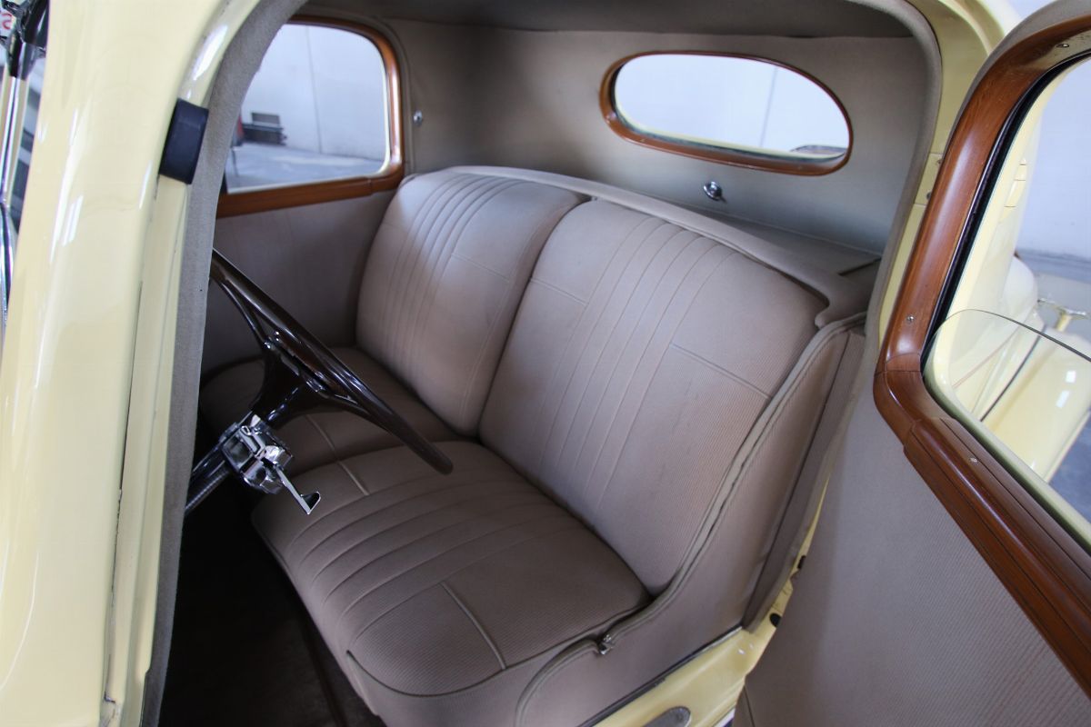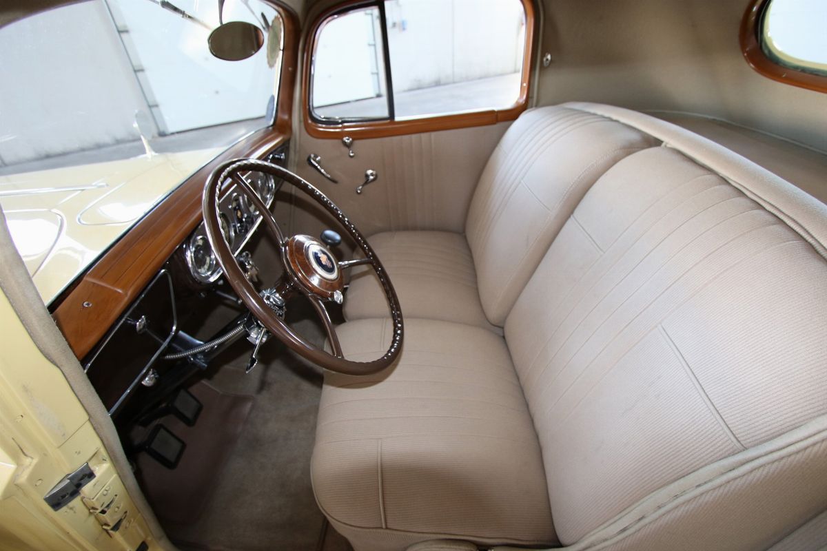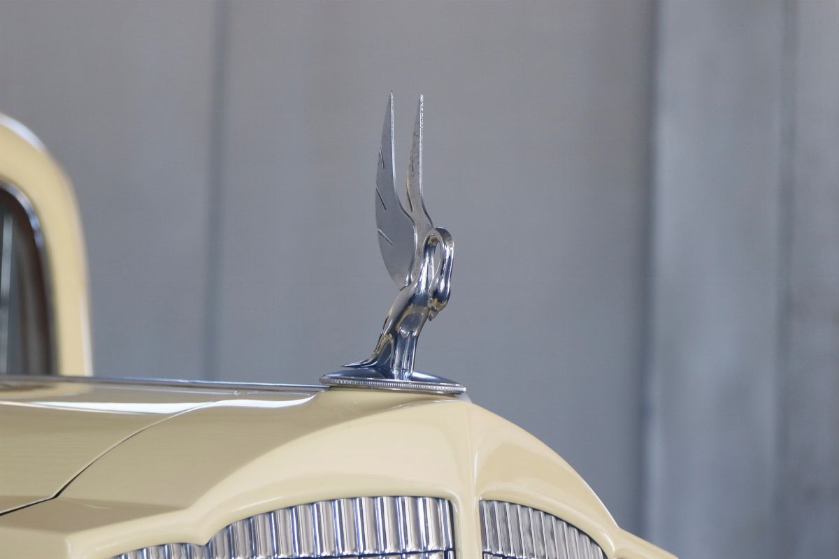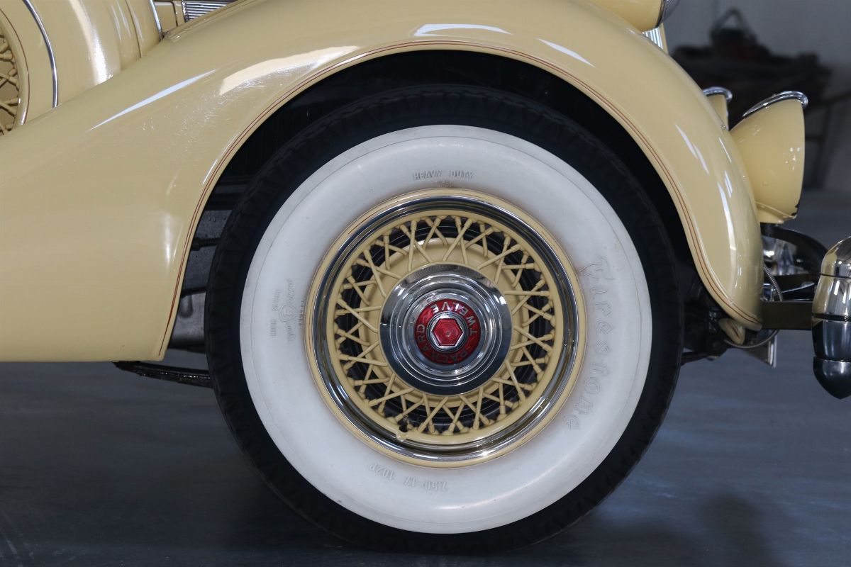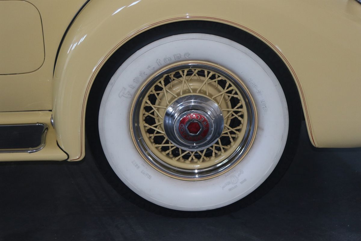 The 1936 Packard Twelve (Model 1407) Coupe with chassis no. 904310 is stunning to observe and an absolutely outstanding example of both the Twelve chassis and the coupe body style. This Packard underwent a full restoration to concours conditions, some years ago. Nowadays the car is a gorgeous automobile for showing or touring. The car is among the CCCA Full Classic™. The exterior reveals the grandeur of the big coupe and many outstanding features. The cream paint is accented with a dark red pinstriping, corresponding with the cloisonné Packard wheel centers and still looks nicely, as does the chrome trim. The long hood is flanked by twin body color enclosed side mount spares, each topped by rear view mirror. The sides of the hood feature stylish, art deco horizontal hood vents flowing back most of the length of the hood highlighted by slender chrome trim. Special features include locking golf bag doors on both sides, body colored Trippe Lights that were a Packard-approved dealer-installed accessory, and a very correct hinged luggage rack. A rumble seat unexpectedly appears from the rear of the car. The very nice interior is upholstered in high quality pleated tan broadcloth, while the exposed rumble seat is covered in tan leather. The dashboard features a chrome central gauge panel with an art-deco Packard rotary radio. Windshield and door window trim is painted with an excellent woodgrain finish and the rear window can raise and lower for fresh air, by means of a rotary knob. A sleek Packard Cormorant hood ornament adorns the stately radiator. Under the hood, the finish and detail is outstanding too, with the matching numbers engine painted in Packard green with black accessories and plated trim that includes the very impressive (21 to a side) acorn head bolts. A really great car to drive, chassis no. 904310 is an excellent example of a seldom seen Packard that can be enjoyed for many years with minimal effort, and will only increase in value. The both sporty and classy appearance resulting from the color, trim and accessories make this a Packard that will be welcomed with excitement for either elegance competitions or racing events.
