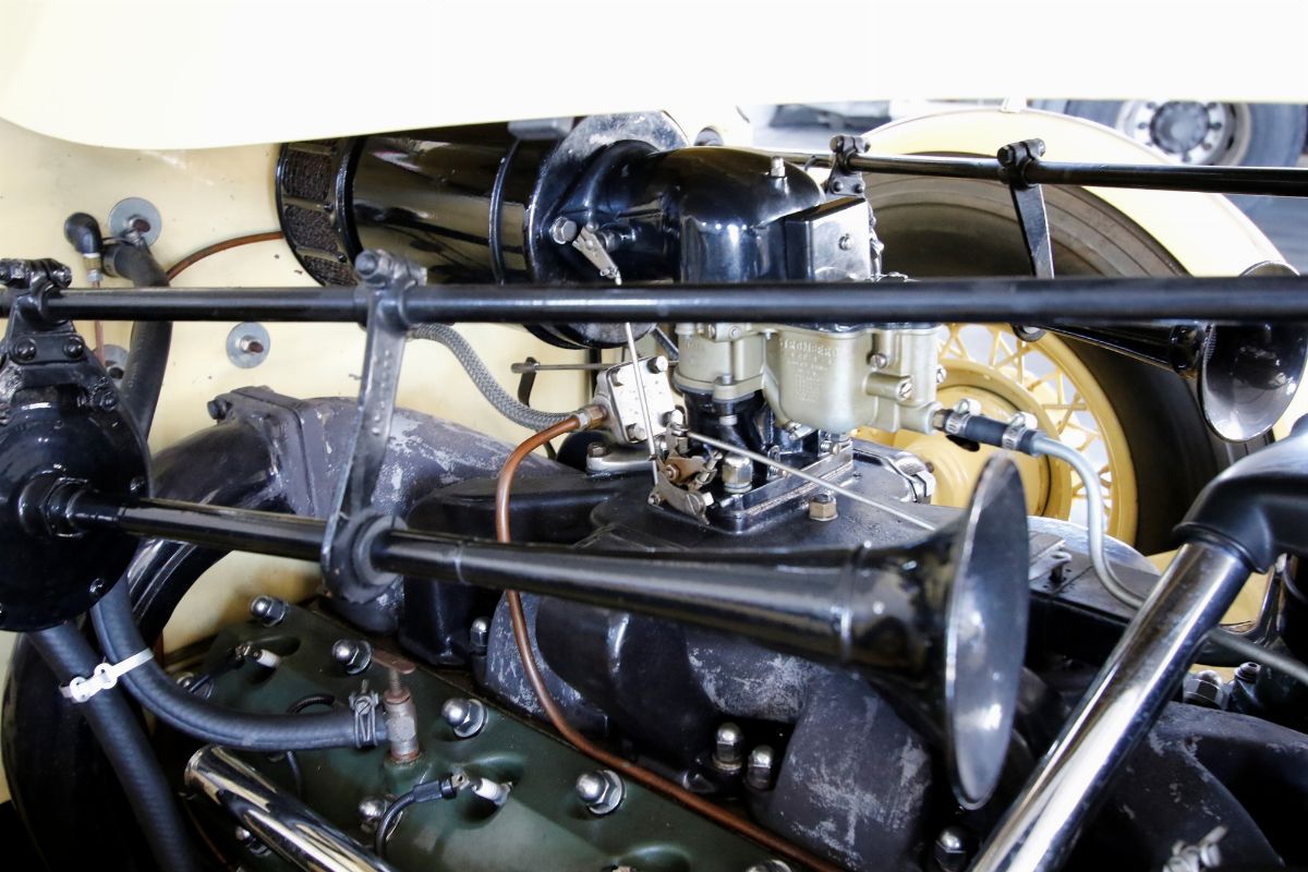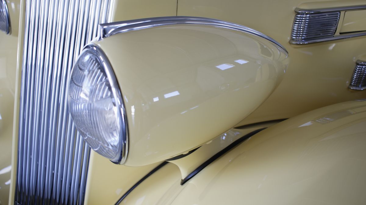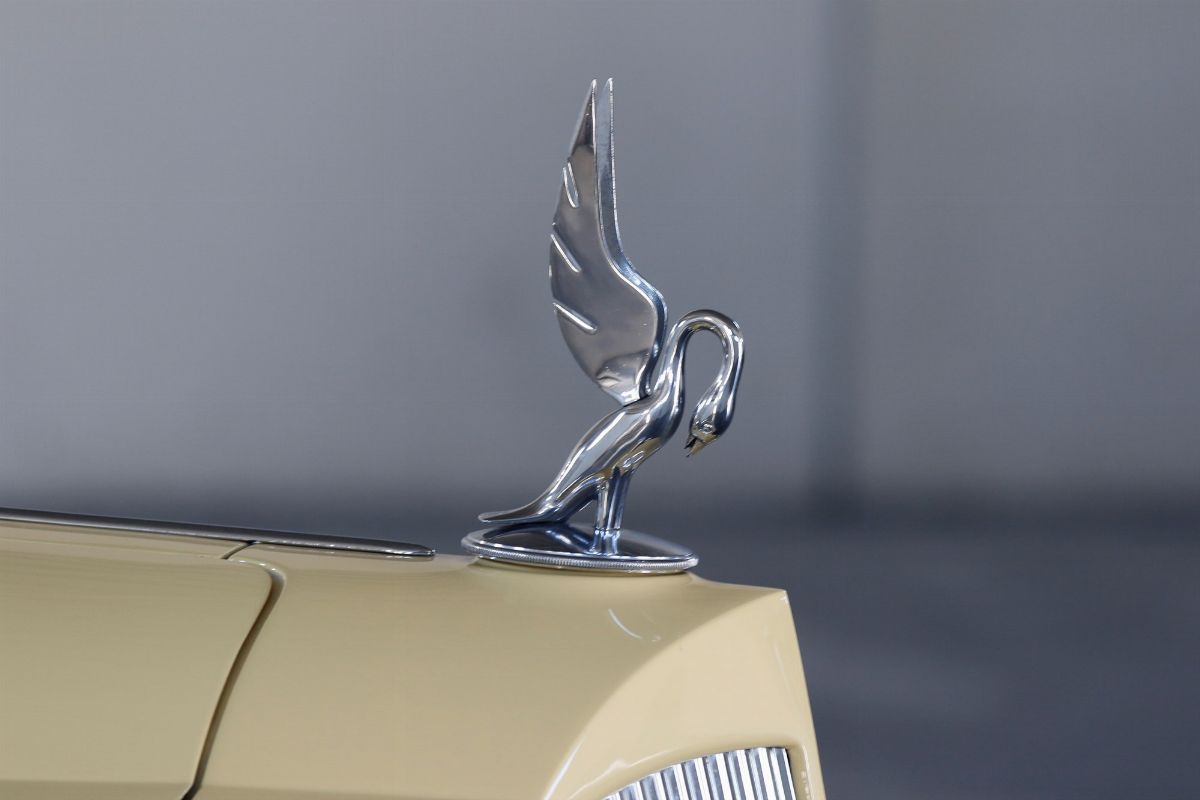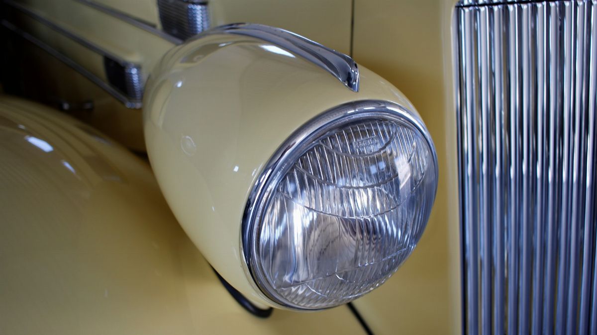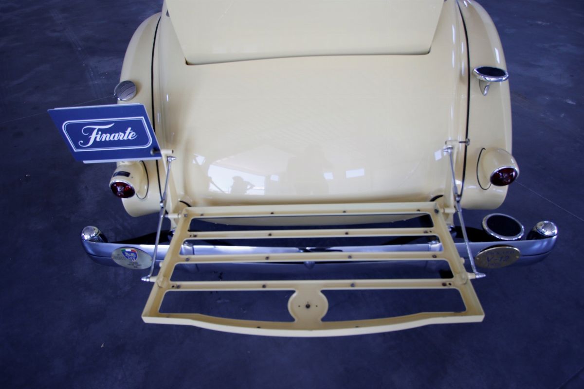The 1936 Packard Twelve (Model 1407) Coupe with chassis no. 904310 is stunning to observe and an absolutely outstanding example of both the Twelve chassis and the coupe body style. This Packard underwent a full restoration to concours conditions, some years ago. Nowadays the car is a gorgeous automobile for showing or touring. The car is among the CCCA Full Classic™. The exterior reveals the grandeur of the big coupe and many outstanding features. The cream paint is accented with a dark red pinstriping, corresponding with the cloisonné Packard wheel centers and still looks nicely, as does the chrome trim. The long hood is flanked by twin body color enclosed side mount spares, each topped by rear view mirror. The sides of the hood feature stylish, art deco horizontal hood vents flowing back most of the length of the hood highlighted by slender chrome trim. Special features include locking golf bag doors on both sides, body colored Trippe Lights that were a Packard-approved dealer-installed accessory, and a very correct hinged luggage rack. A rumble seat unexpectedly appears from the rear of the car. The very nice interior is upholstered in high quality pleated tan broadcloth, while the exposed rumble seat is covered in tan leather. The dashboard features a chrome central gauge panel with an art-deco Packard rotary radio. Windshield and door window trim is painted with an excellent woodgrain finish and the rear window can raise and lower for fresh air, by means of a rotary knob. A sleek Packard Cormorant hood ornament adorns the stately radiator. Under the hood, the finish and detail is outstanding too, with the matching numbers engine painted in Packard green with black accessories and plated trim that includes the very impressive (21 to a side) acorn head bolts. A really great car to drive, chassis no. 904310 is an excellent example of a seldom seen Packard that can be enjoyed for many years with minimal effort, and will only increase in value. The both sporty and classy appearance resulting from the color, trim and accessories make this a Packard that will be welcomed with excitement for either elegance competitions or racing events.