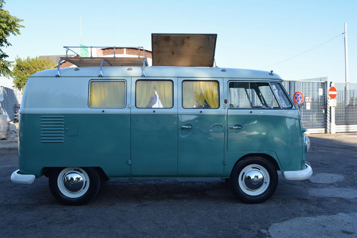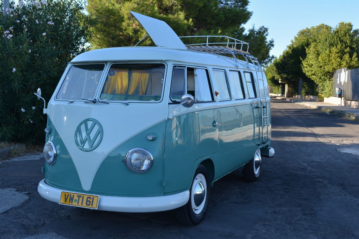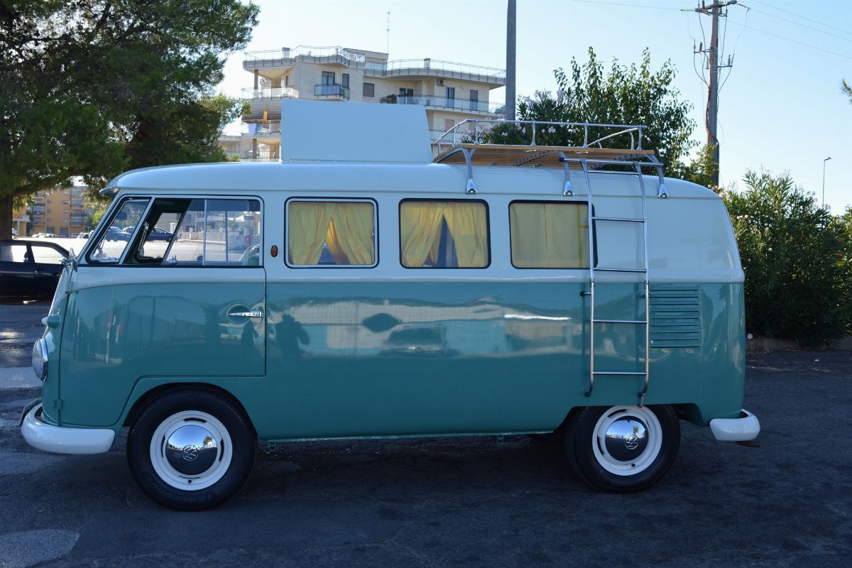 Very popular and sought after, the minivan Volkswagen Type 2 was a commercial vehicle produced by the German motor company from 1949 to 1967 in almost 1,800,000 units. The commercial success was enormous and planetary. The VW Type 2 also became a myth not only for the Hippie generation, especially in the Samba Bus (a two-colored van) and Westfalia (camper) variants.1 October 1844 marks the beginning of the Westfalia company: Johann Bernhard Knöbel started a forge, thus laying the foundation stone for a long-lasting history. He originally built heavy horse-drawn carts to transport goods arriving at the new train station. Anyway, the history of Westfalia conversions began in 1951 with one customer’s special wish. When Westfalia in Wiedenbrück created the so-called “Camping Box”, especially designed for an officer in the British Forces stationed in Germany, he had a simple request: equip a VW transit van as a home. This had to be neatly built into the vehicle and at the same time had to be suitable as a room for sleeping, living and working. So the people at Westfalia took a VW bus, installed a double door and built in multi-purpose furniture and decoration behind the front seats. For example pretty ruffled curtains which matched the checked pattern of the furniture. A real zeitgeist combination. A studio couch, folding table, seat bench, roll-front cabinet and sideboard completed the interior ensemble. The result was such a success that the Camping Box soon went into series production and the converted VW Bus became the dream car of the 50s, because it was multifunctional and could be used as a hotel on wheels. In 1962 Westfalia built the first motorhome with furniture surfaces made of light plastic material instead of wood, directing the story of the modern campervan, but it was again a VW Type 2. Still in full activity, after almost 70 years of equipping leisure vehicles, in autumn 2019, Westfalia celebrated its 175th anniversary in Wiedenbrück.