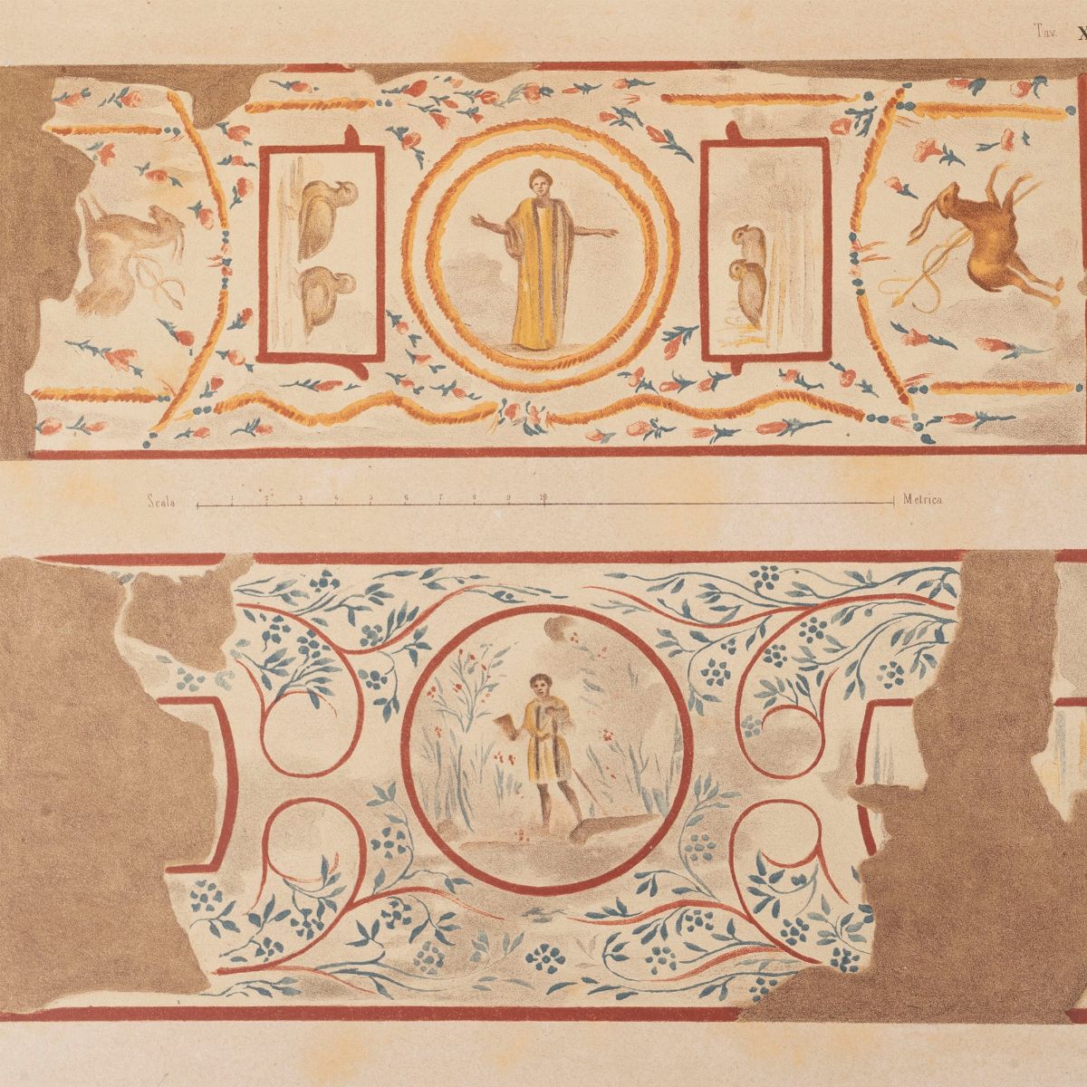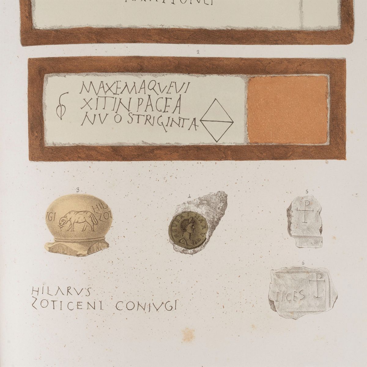 Rome, chrome - pontifical lithograph following Salvucci typography. 3 folio volumes printed from 1864 to 1877. Illustrations in the text and 158 black and white and color plates, uniform contemporary bindings,  half brown leather, smooth back 3 gussets of various with  title, author and volume number  small defects.