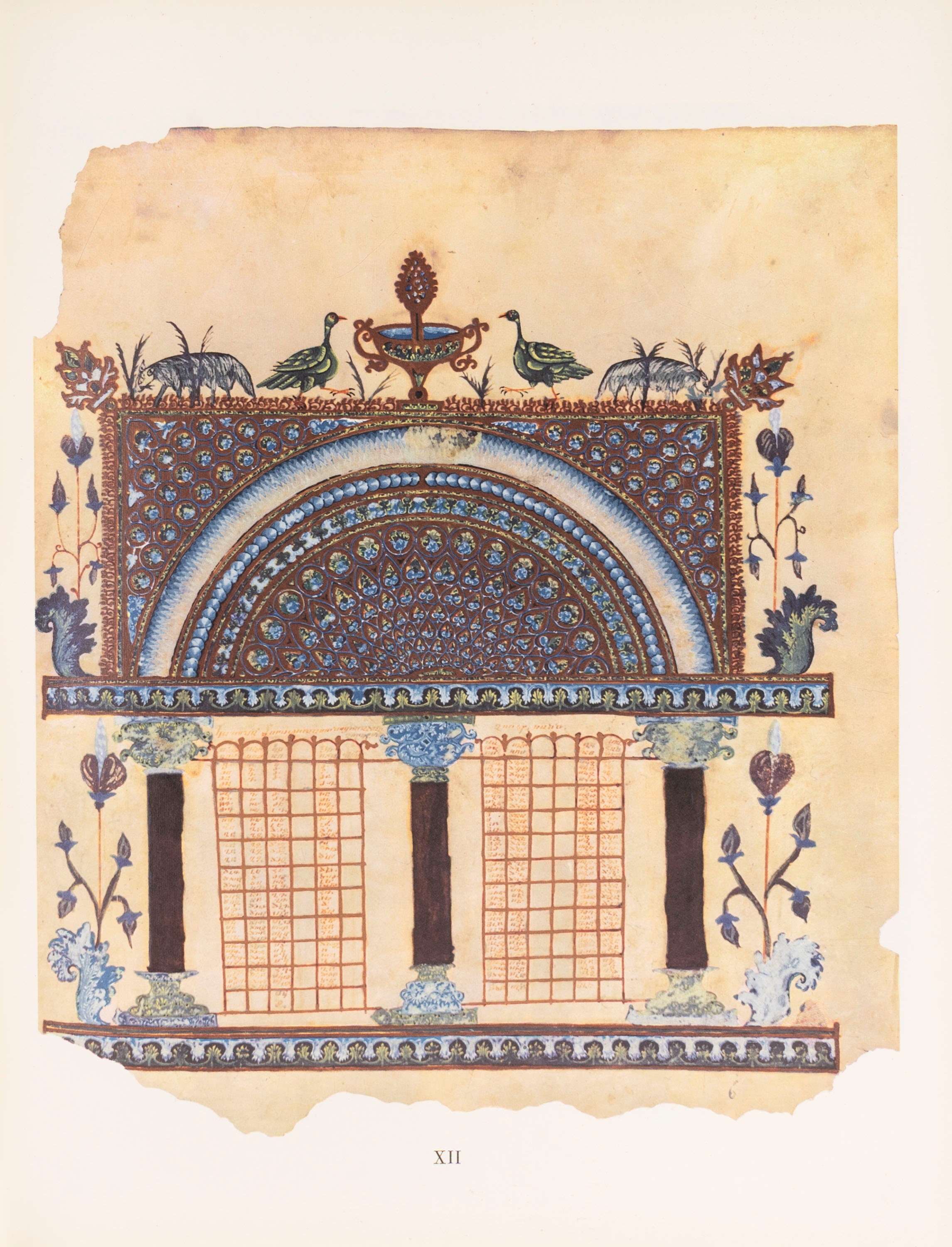 Venice, Casa Editrice Armenia San Lazzaro, 1966. 45.5 x 35 cm. With 84 color reproductions of full-page Armenian miniatures protected by vellum, editorial binding with gold title, illustrated dust jacket, small defects and tears on the dust jacket