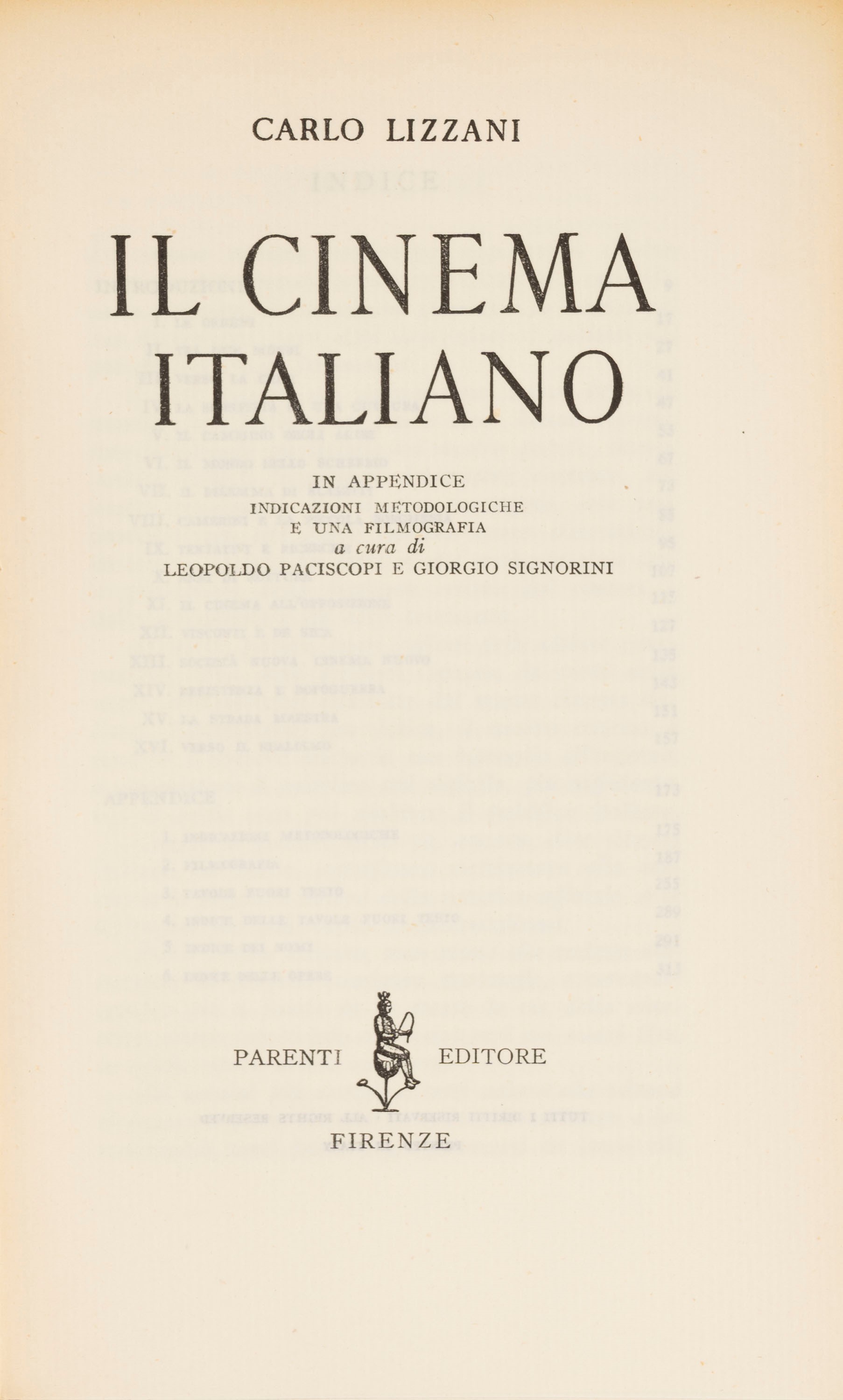 vol. 1. Milan, Poligono Società Editrice, 1951. Paperback, with b.w. plates. out of text. § Carlo Lizzani, Italian cinema. Florence, Parenti Editore, 1953. Editorial paperback with illustrated dust jacket, in 8°. B/W illustrations outside the text § Lo Duca, Storia del cinema, Milan, Garzanti, 1951. Paperback.
