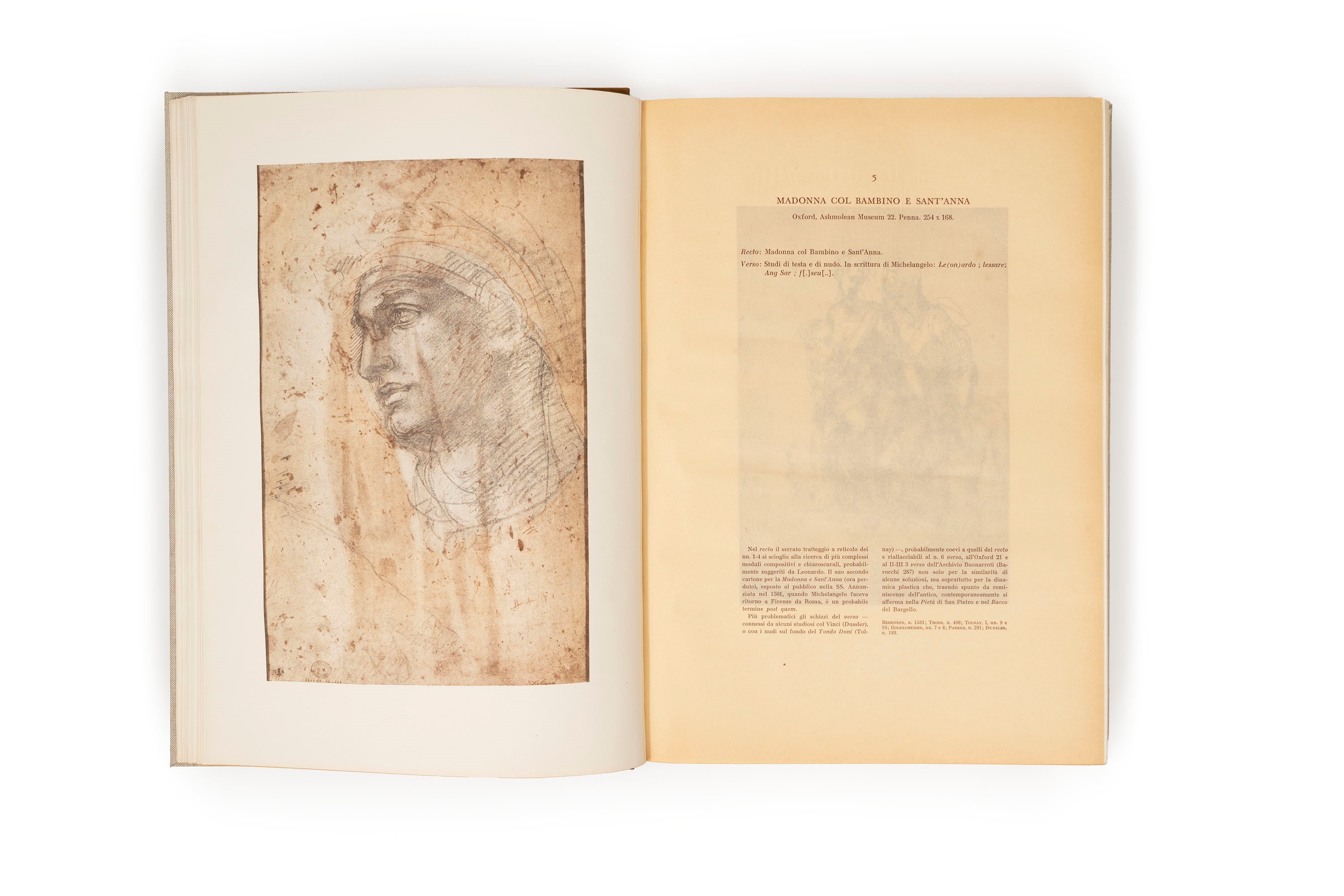 Florence, Cassa di Risparmio di Firenze, s.d.. In 2nd. With introduction by Mario Sali, introduction by Carlo De Tolnay, notes by Paola Barocchi. With 103 drawings reproduced in facsimile, editorial binding in half leather and canvas, case. § Oberhuber, Konrad; Vitali, Lamberto; Raphael. The cartoon for the School of Athens. Milan, Silvana Editoriale d'Arte, 1972. In 2nd. With 70 color plates, half leather and canvas binding.