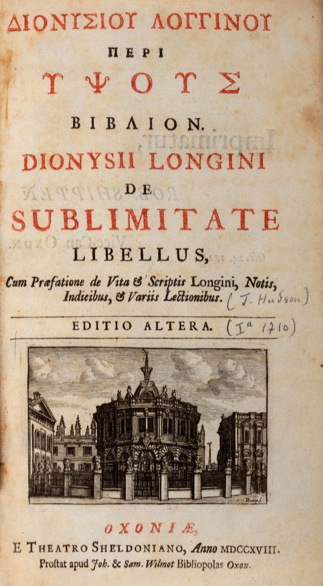 Oxford, Sheldonian Theatro, 1718. In the 8th. Text in Greek and Latin. Title page printed in red and black, wrong at the end, & nbsp; scattered reddening, burnished Aa file, coeval binding in brown calfskin, dry embossed decorations on the plates, back with 5 nerves with gold title, some defects. & nbsp;
