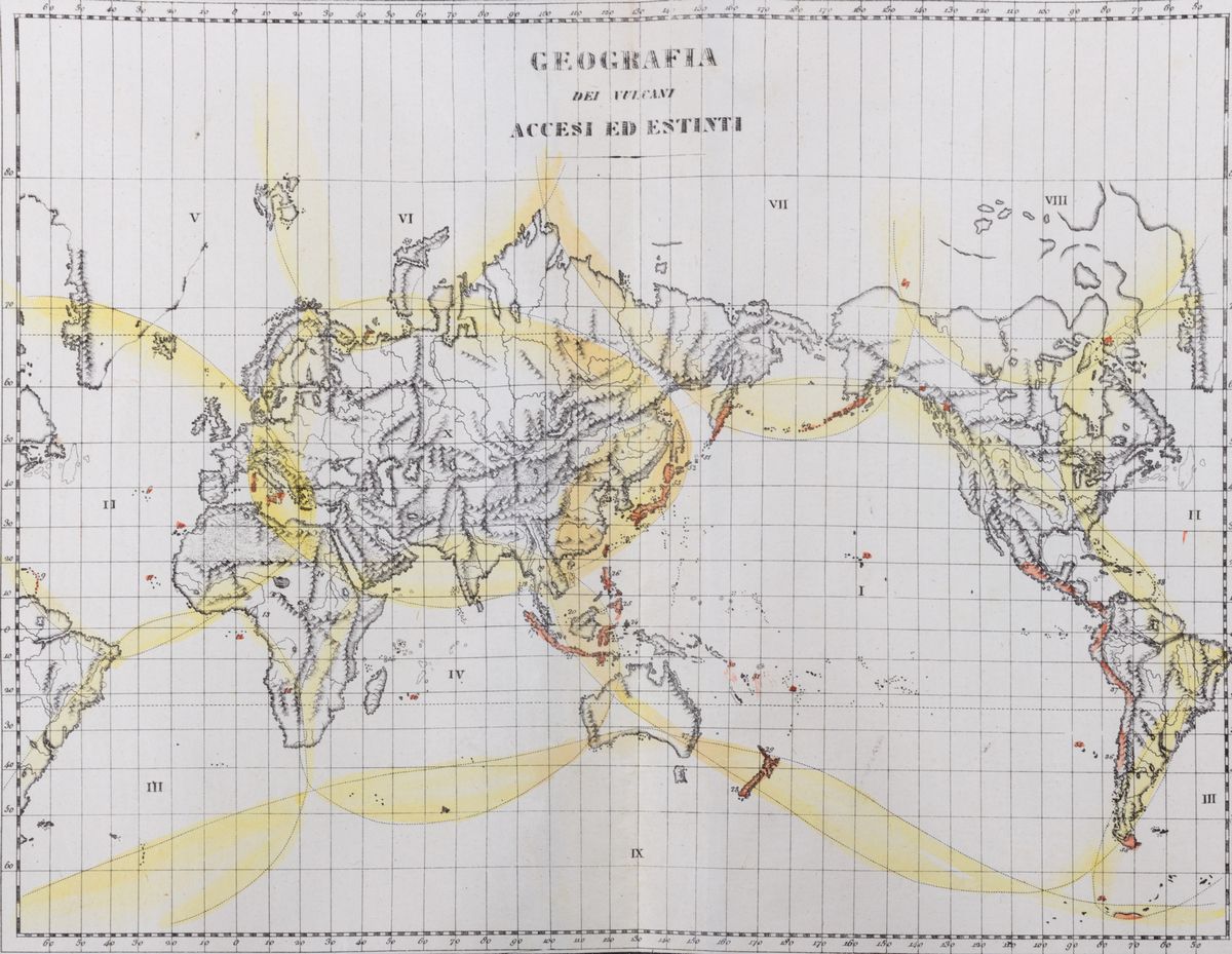Florence, Vincenzo Batelli and Compagni, 1840. In 2 °. With 67 tables of geographical maps (numbered LVIII), astronomical, orographic and hydrographic, including large folded ones, with a slight period coloring, slight blooms, some papers with slight browning, pl. XVII with small tears with a gap on the left side, pl. XXXV and XXXVI (A) with small internal tear, XXXVI (B) and LIII with internal tear and external margin, contemporary leather binding, title spine and gold friezes, spray cuts, defects. & Nbsp;