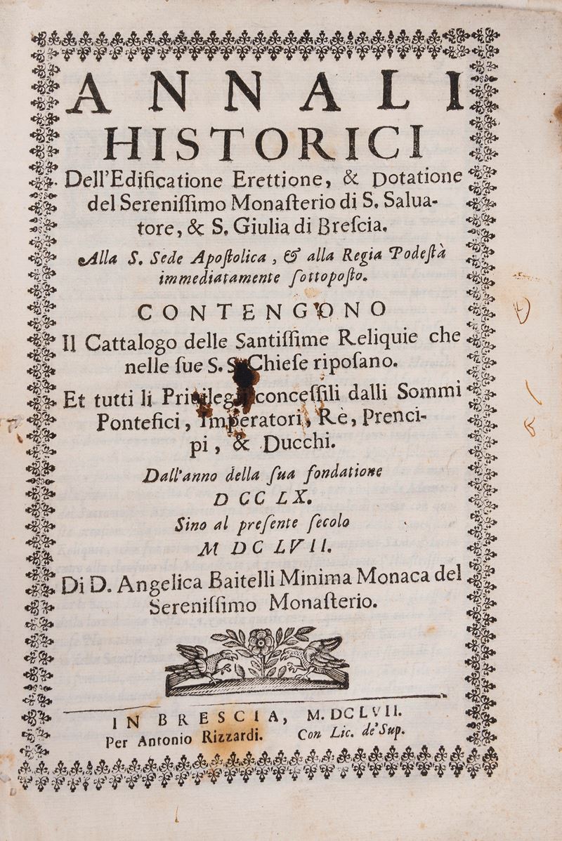 Historical Annals of the Construction, Erection, and Endowment of the Most Serene Monastery of S. Salvatore and S. Giulia in Brescia, 1657