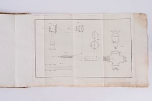 Milan, at Giovanni Pirotta, 1818. In-8°. Original soft-cover binding; pp. 72, 38, [2], 2 c. of folded plates. Binding a little loose. Traces of use on the cover, presence of some damp stains on the cover and also on some leaves; title page with browning and damp stains; leaves a little dirty (dusty, especially in the margins), with burrs and partially uncut. Overall, copy in fairly good condition.