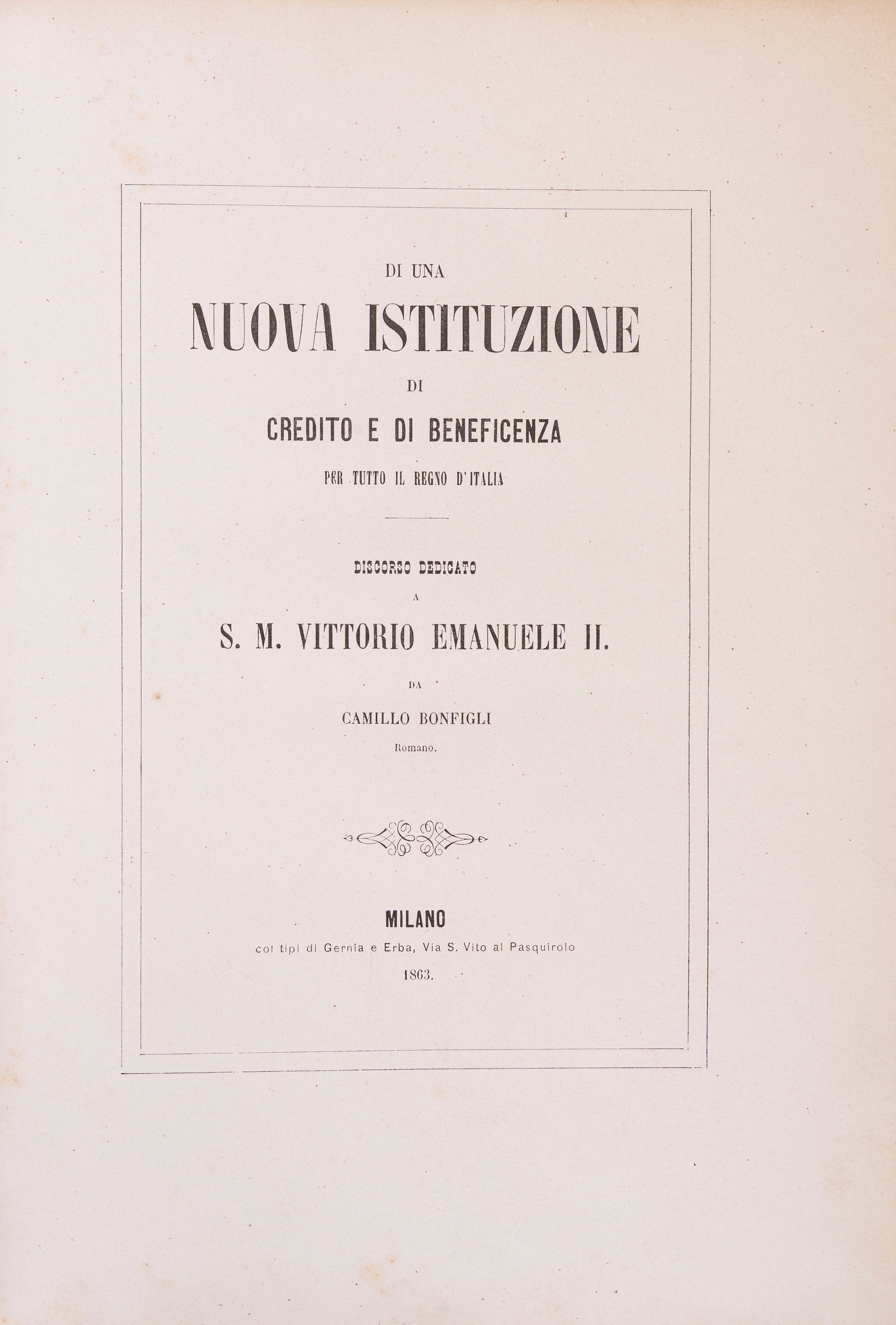 Of a new credit and charitable institution for the whole Kingdom of Italy, 1863