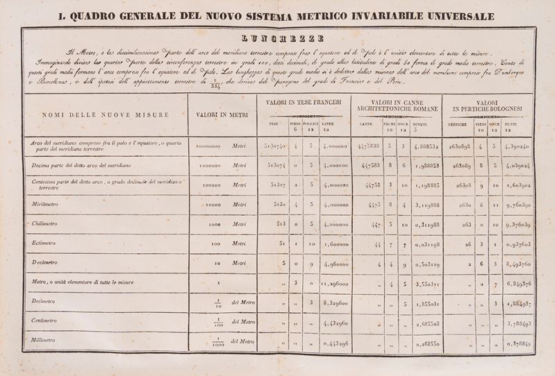 European metrology, compared to that of Rome, Bologna and Paris and vice versa, 1833