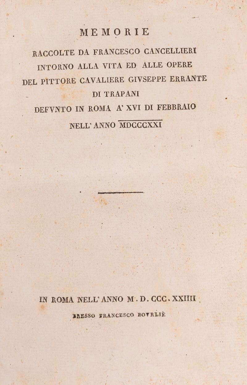 Memoirs collected by Francesco Cancellieri on the life and works of the painter and knight Giuseppe Errante of Trapani..., 1824