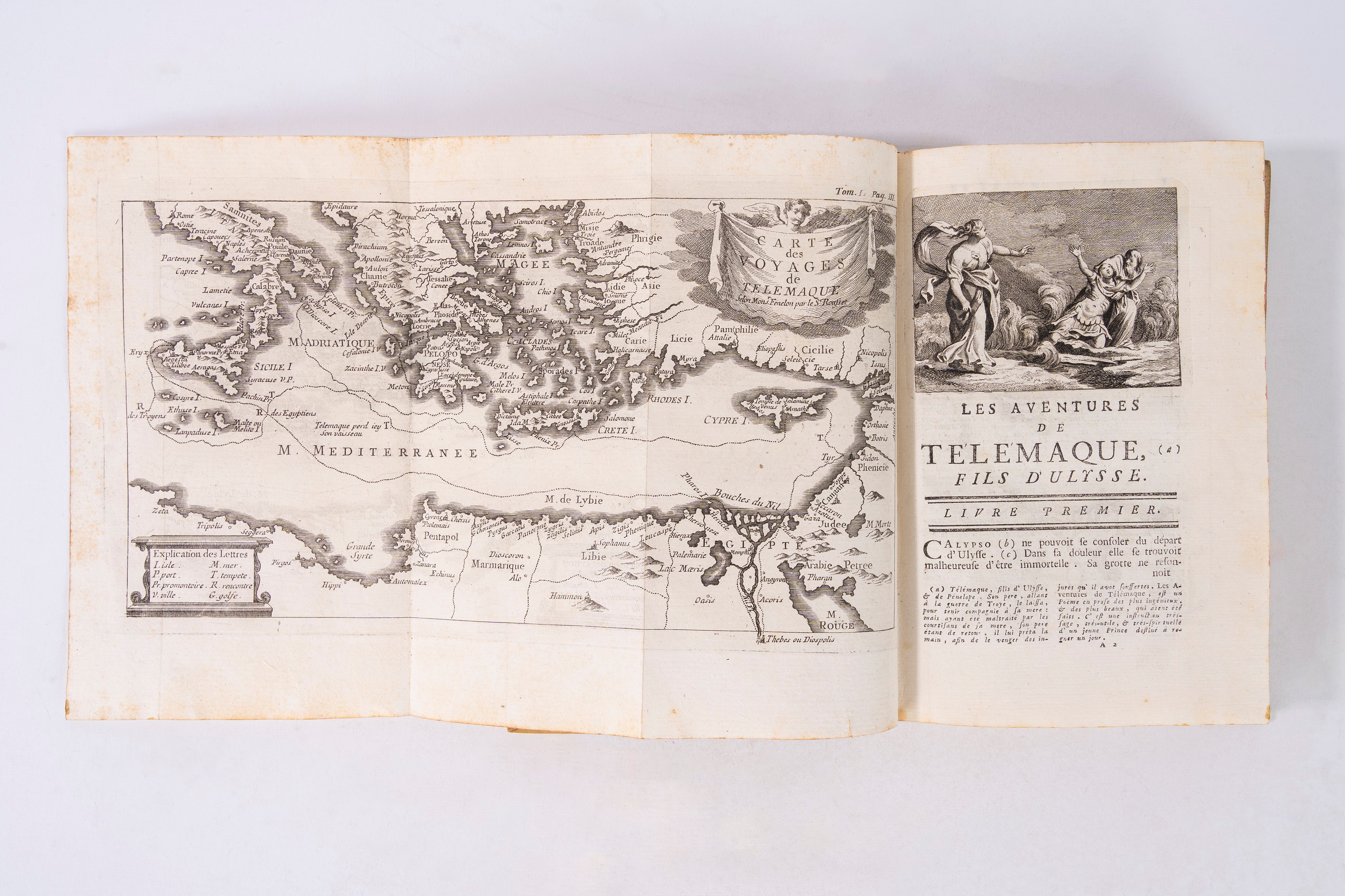 Venice, Chez Guillaume Zerletti, 1768. In 8vo. 2 volumes. Frontispiece finely engraved by Volpato, framed title pages with vignettes, headpiece with the coat of arms of Girolamo Vallaresso, to whom the book is dedicated, figured initials and two endpapers, 24 half-page vignettes engraved in copper, folded plate depicting the voyage of Telemachus, marginal foxing, contemporary hard parchment binding, gilt title within a tag on the spine, minor signs of aging. Handwritten note on the inside cover dated 1874.