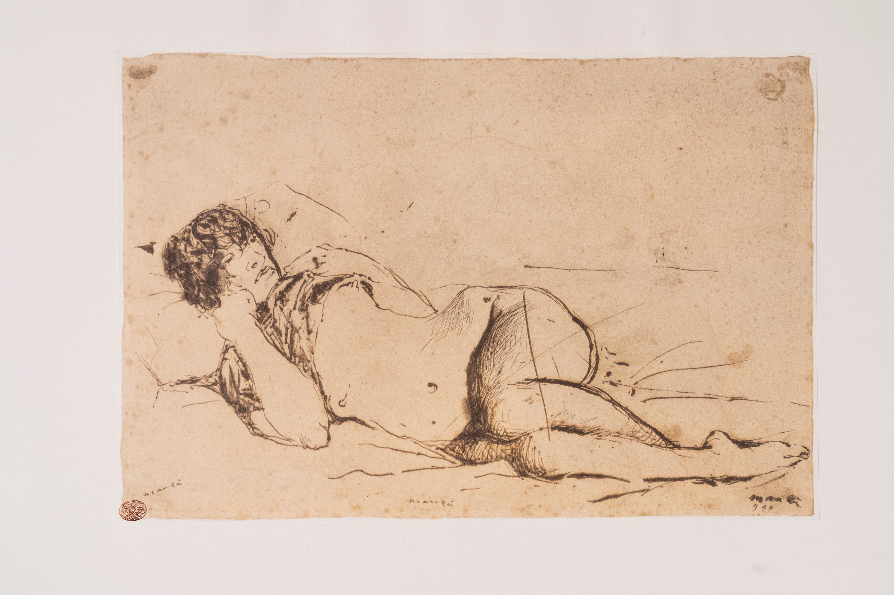 Turin, Giulio Einaudi Editore, 1961. In 2°. Introduction by Cesare Brandi, 41 reproductions of Manzù's drawings on loose sheets, each in a mat and with an Einaudi stamp, in a publisher's canvas slipcase with the artist's name printed on the front cover, very light signs of aging.