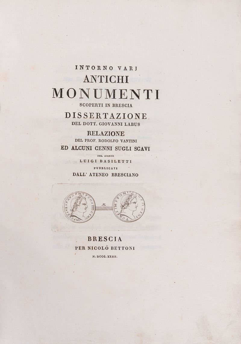 Rare original edition of this treatise on the ancient monuments of Brescia.