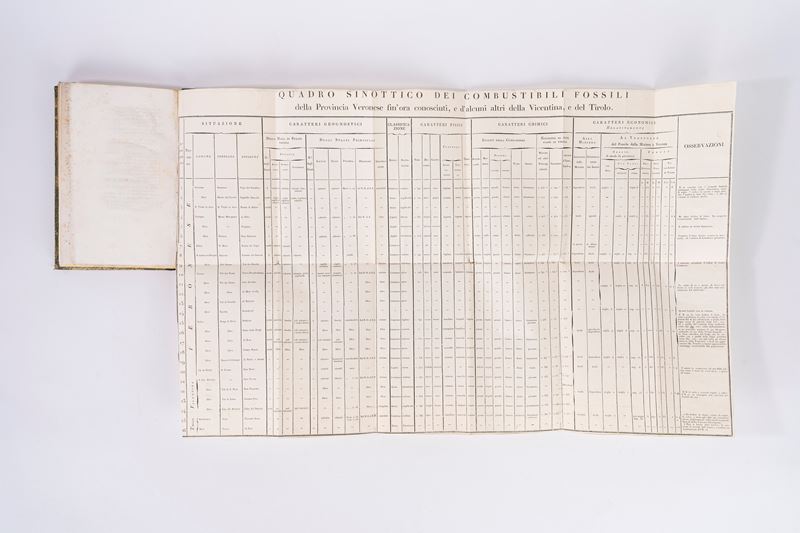 Verona, from the Mainardi printing house, 1816. In-4°, bound in green/black half leather, with marbled paper on the boards, gilt decorations on the spine, gilt title on a brown leather label; pp. 115, [1], [2] c. of folded plates. Light traces of use on the binding (abrasions on the boards' paper and on the leather). Occasional and rare foxing, but generally clean paper, with very large margins. A very good copy.