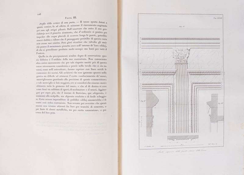 Brescia, Minerva printing house, 1838. In 2°. Volume I only. With numerous copperplate plates, sporadic and light marginal foxing, contemporary half-vellum binding with corners and blue decorated paper, gold title within a tag on the spine.