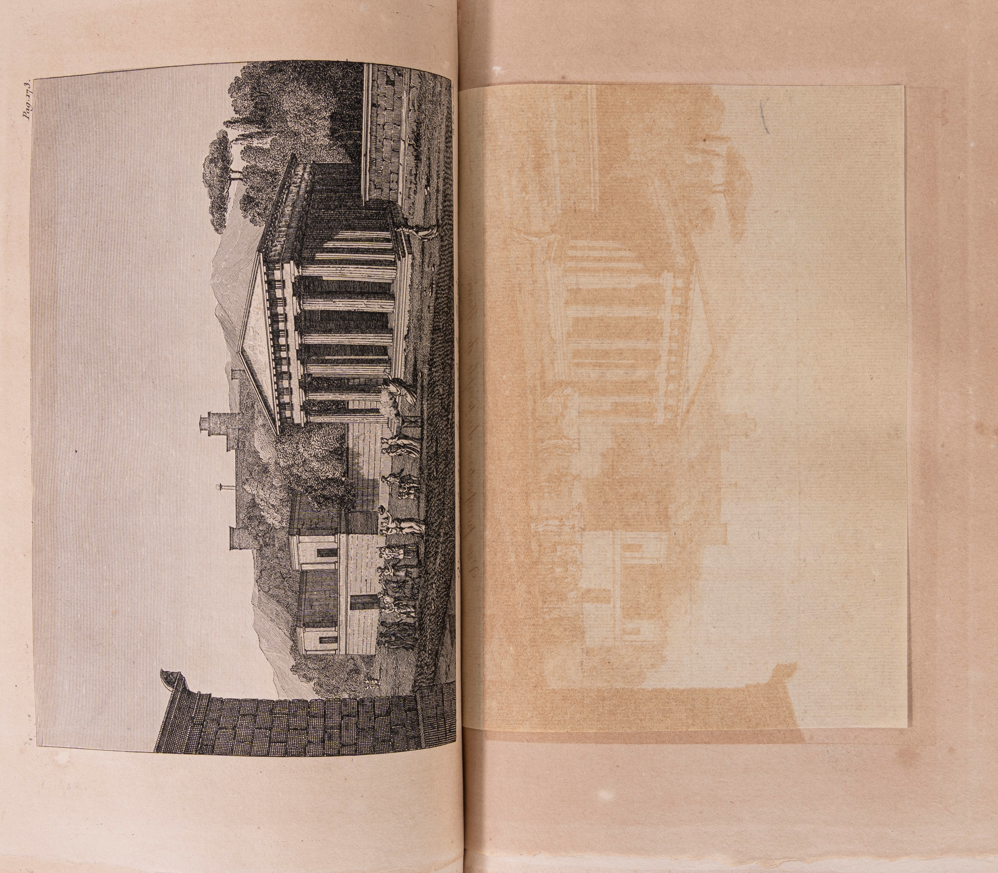 Paris, Librairie de Bossange, 1829. In 8°. Numerous illustrations in the text, most protected by vellum, light browning, some occasional foxing, elegant contemporary green morocco binding with gold and blind stamping, gold title on the spine with 5 raised bands with decorations, gilt edges, slight defects on the hinges.