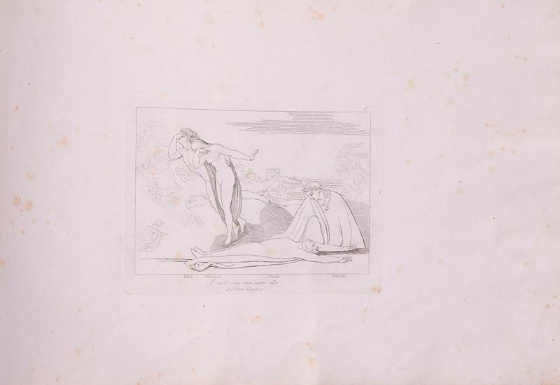 At the request of the young Dutch banker Thomas Hope, the English artist and sculptor John Flaxman (York 1755–London 1826) agreed to illustrate the Divine Comedy for three guineas each. During his stay in Italy, where he devoted himself to the study of ancient art, between 1787 and 1794 he created the plates in his essential, linear style, delineating the human figures and strong personalities with a few precise strokes. Flaxman's wife wrote in a letter that the illustrations of Dante "are drawn with simple lines, no shadow, and treated in the beautiful Gothic taste with the sentiment of the poet and artist united."