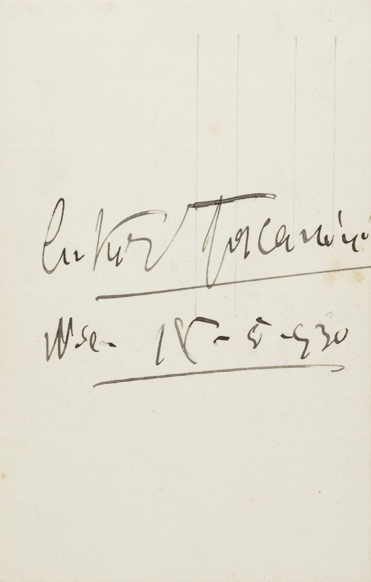 Bella foto-cartolina autografata, datata 18/5/1930, 135 x 88 mm.; unito un volume su Toscanini di Paul Stefan, Verlag, 1935, con dedica dell'autore.