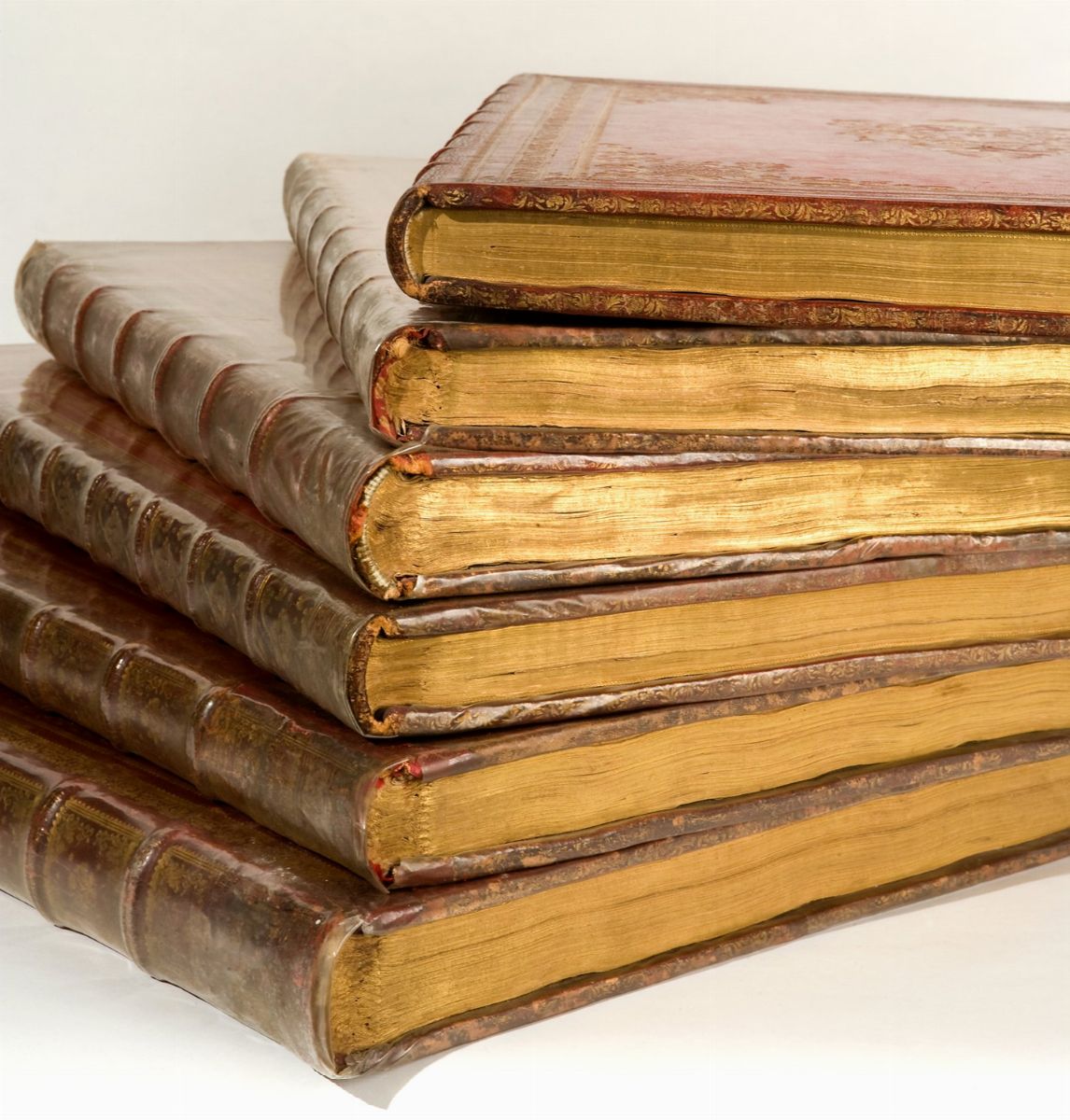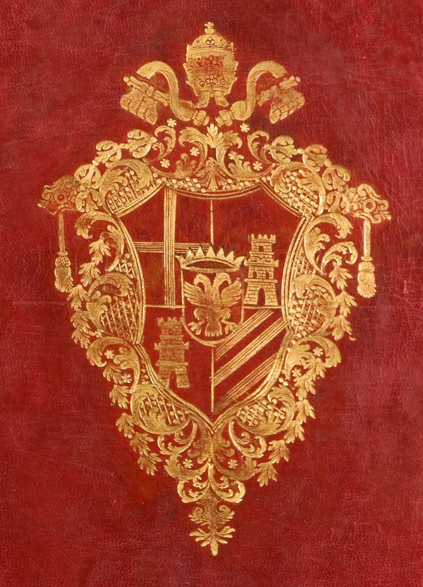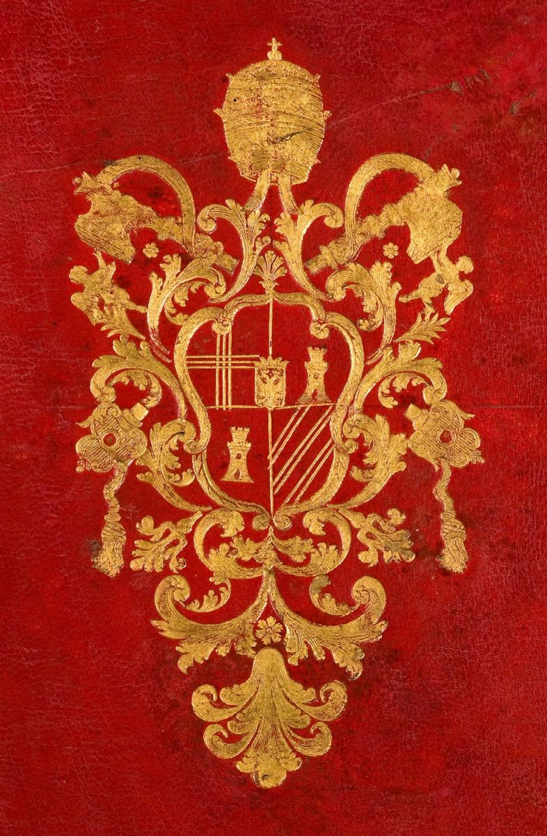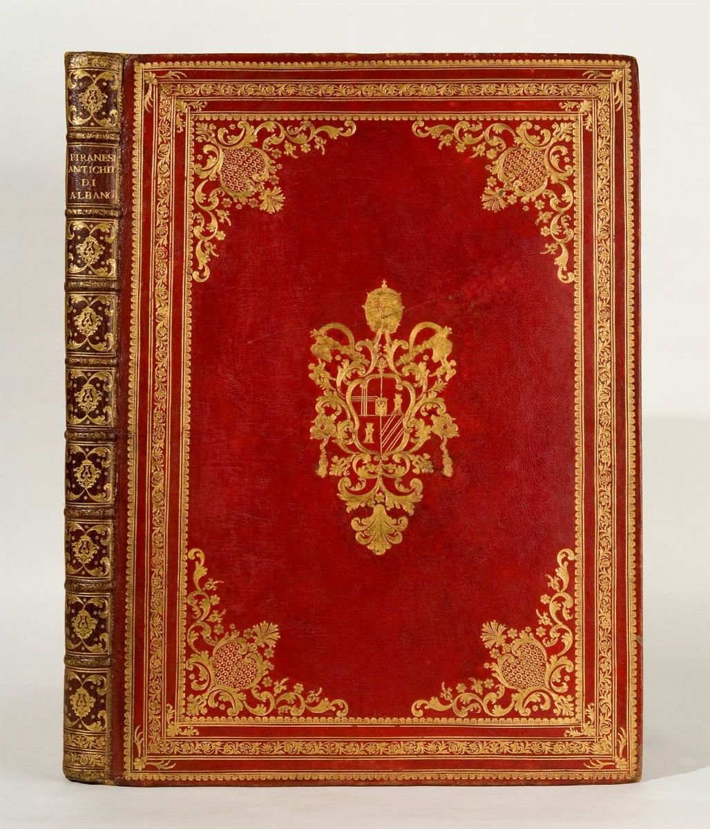 Ciascuna opera è contenuta in legatura dell’epoca in marocchino rosso decorata in oro con al centro dei piatti le armi di Clemente XIII (Carlo della Torre Rezzonico), sormontate dalla tiara e dalle chiavi di Pietro, dorso a 6 nervi, tagli dorati, restauri, spellature e qualche macchia. I 4 volumi de Le antichità romane presentano una legatura con decorazione diversa da quella delle altre 2 opere.