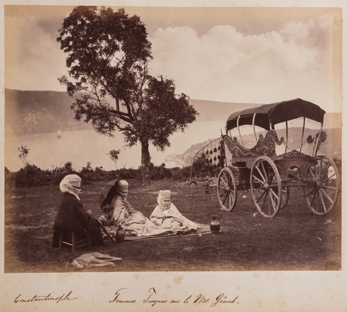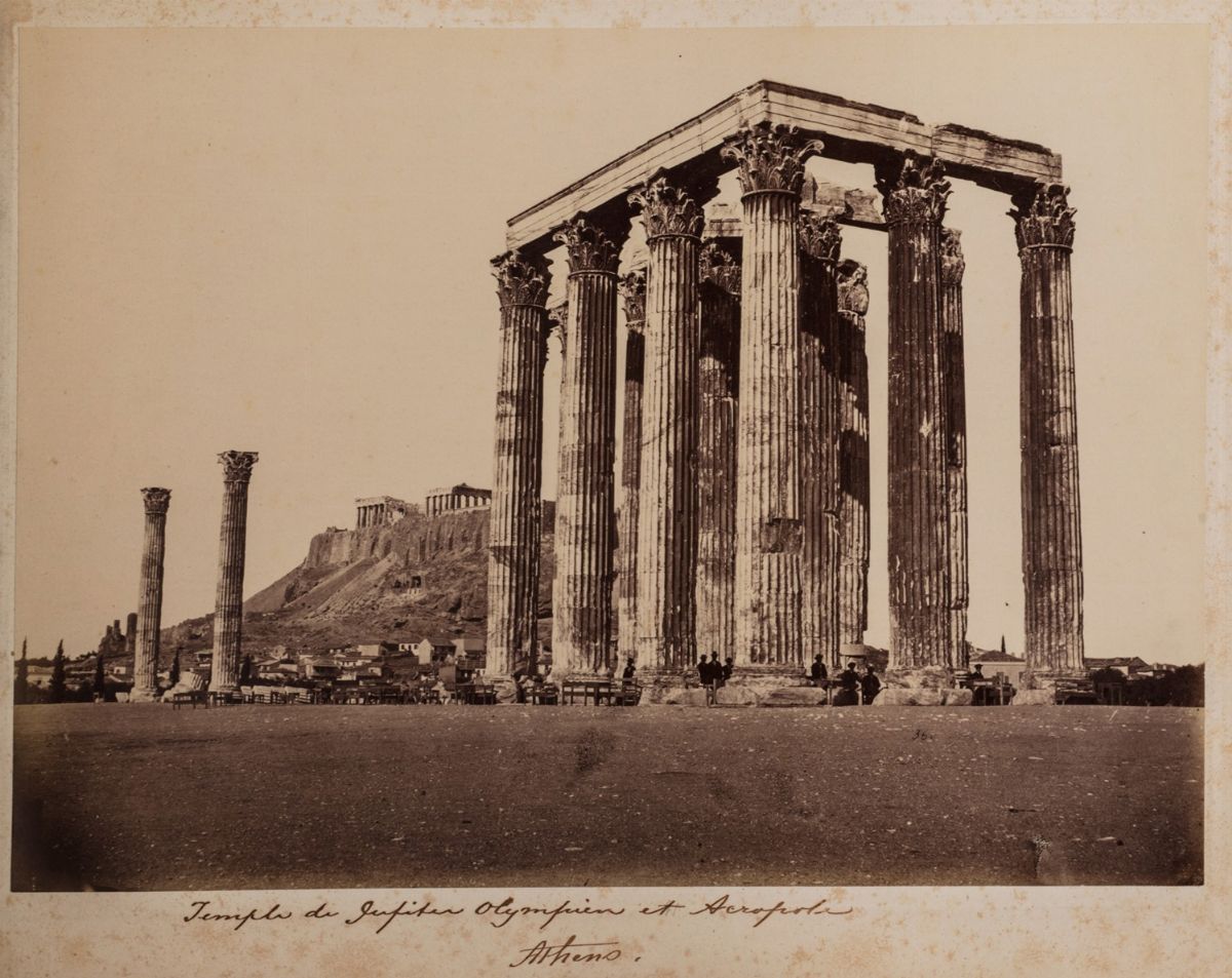 Album di 100 fotografie, [fine sec. XIX], stampa all'albumina, montate su entrambe le facciate su 50 cartoncini, la maggior parte con indicazione della località raffigurata manoscritta da mano dell'epoca, fioriture, album mm. 410 x 330, pagina dell'album mm. 376 x 312, legatura in marocchino blu dell'epoca, ai risguardi in raso bianco timbro di "Auguste Klein / 6.B.vard des Capucines, 6 / Paris", difetti e mancanze.