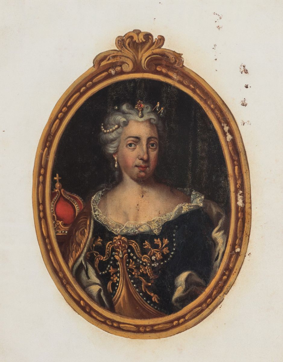Atto di nomina di Nochiarolli a "Consiliario Nostro Regio" su pergamena, 4 carte, 327 x 276 mm., datato Vienna 13 giugno 1744, e sottoscritto in fondo con firma autografa di Maria Teresa, ritratto in ovale dell'Arciduchessa d'Austria dipinto ad olio su cartoncino e applicato al I foglio, legatura coeva in velluto cremisi, sigillo in ceralacca entro capsula metallica recante le insegne imperiali, legacci in seta.