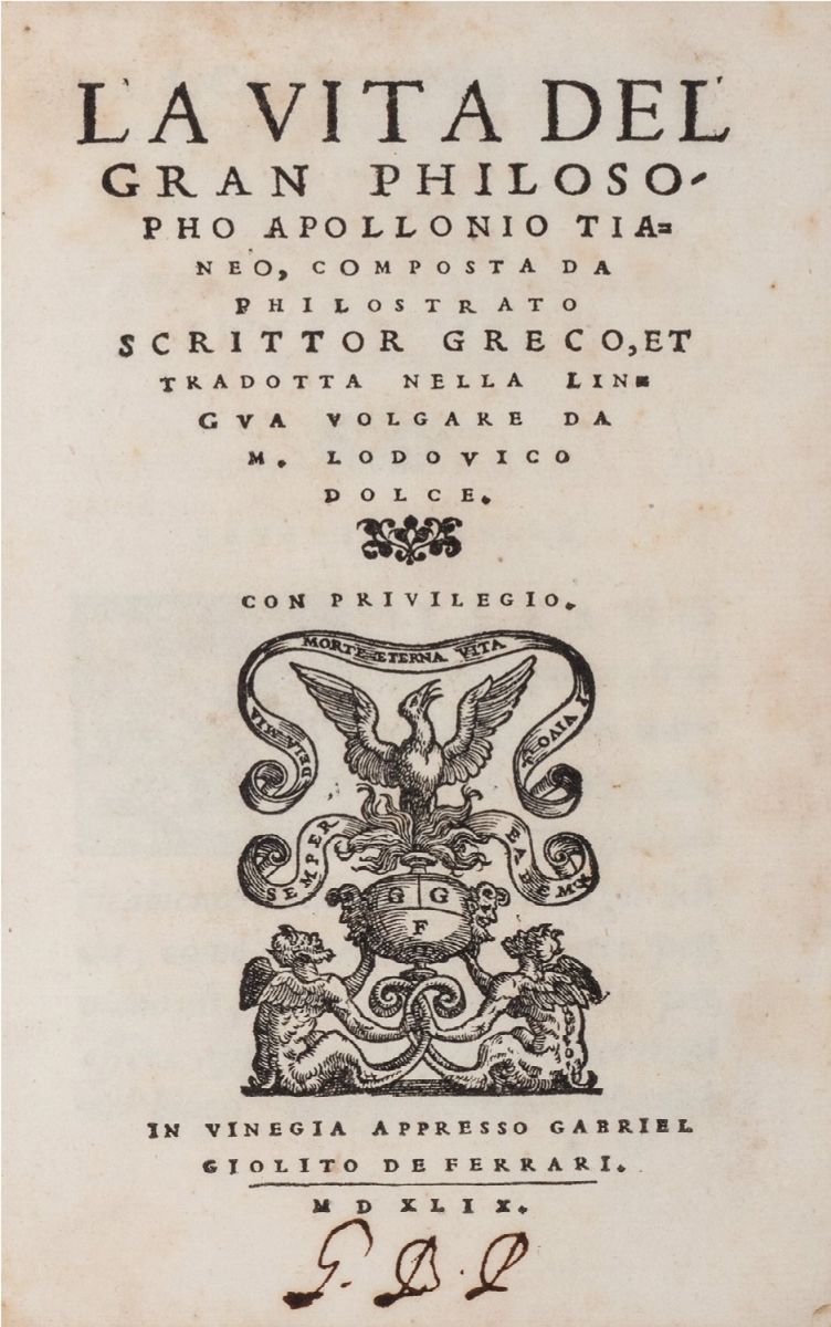 Venezia, Giolito de Ferrari, 1549. In 8°. Marca tipografica della fenice al frontespizio e in fine, pergamena floscia coeva. Marginali postille di mano cinquecentesca.