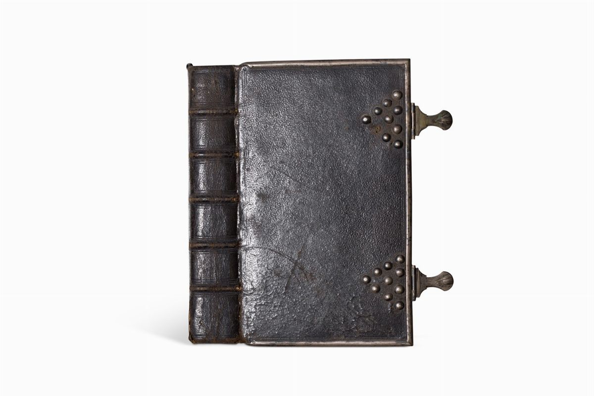 Venezia, ex Typographia Balleoniana, 1713. In 8°. Vignetta incisa in rame al frontespizio,4 incisioni in rame a piena pagina, frontespizio e testo stampati in rosso e nero, al margine del frontespizio piccoli strappi e lacune, legatura dell'epoca in marocchinomtesta di moro, fermagli in metallo, tagli dorati, qualche graffio e poccola mancanza ad uno dei fermagli. §OfficiumBeataeMariaeVirginis[...]. Venezia, N. Pezzana, 1706. In 8°. Vignetta xilografica al frontespizi, legatura in vitello bordeaux, ai piatti elaborata decorazione anche a rilievo di motivi geometrici e fitomorfi impressa a secco, al dorso titolo e frefi in oro, fermagli in metallo, custodia in cartonato con iniziali in oro al piatto anteriore, sciupata. § Insieme nel lotto altre due edizioni in graziosa legatura.