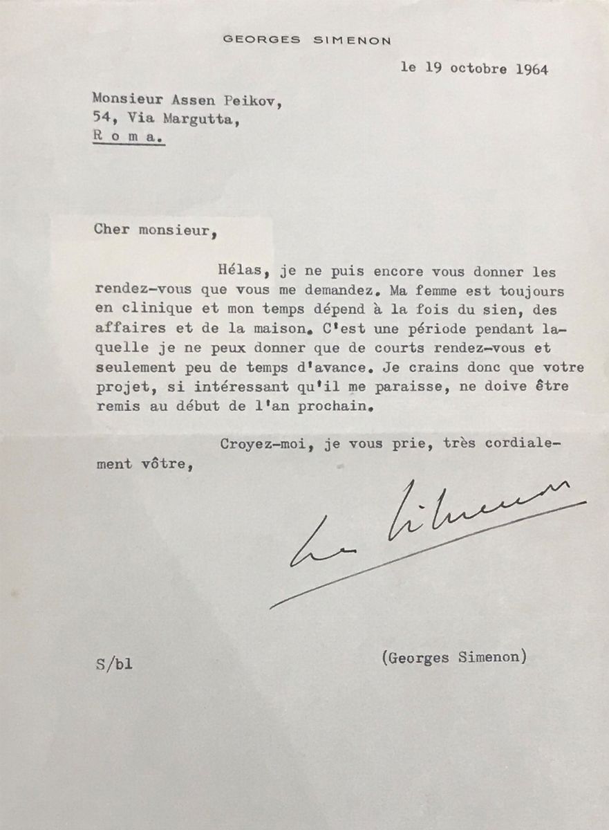Assen Peikov fu principalmente uno scultore. Di nascita bulgara, Sofia nel 1908, nel 1938 arrivò a Roma: e qui trovò la sua patria d'elezione. Aprì il suo studio a Via Margutta (dove altrimenti?) e dopo pochi anni accolse anche il fratello Ilia, valente pittore. Fu un grande ritrattista, con all'attivo circa 1200 soggetti tra i più illustri suoi contemporanei: De Chirico. Savinio, Gentile, Barilli, Ungaretti, Bontempelli, Alvaro, Bonomi, Simenon etc. Il nucleo più interessante dell'archivio che qui si propone è l'insieme di 17 lettere di illustri colleghi e amici, relative all'opera di Peikov: una sorta di biografia polifonica costruita a più voci...e che voci. Si prenda ad esempio la lunga lettera dissertazione di De Chirico: "Qualcuno che oggi volesse dire con esattezza se la decadenza in cui si dibatte l'arte moderna è più palese nella pittura che nella scultura, sarebbe molto imbarazzato. Tanto in basso stanno oggi queste due arti, tale è l'impotenza che oggi regna tra scultori e pittori, che un triste primato sarebbe difficile a stabilire. Ciò che soprattutto colpisce nella produzione artistica moderna è l'assenza completa della forma. (...) Invece guardando la scultura di Peikov si sente quest'amore per la forma e la costruzione, che sono le fondamenta e le basi principali di ogni vera opera d'arte. (...) Le sculture di Peikov mostrano che egli sente ed ama le forme ed è continuamente preoccupato di dare la plasticità ai volti ed ai corpi. Egli non cerca di evitare la difficoltà ma le affronta coraggiosamente.(...)." Lo scritto è dell'aprile 1945, ed i giudizi su Peikov diventano il pretesto per una lunga digressione sullo stato dell'arte in Italia. Forse inedita. Libero de Libero, grande amico di Peikov, così si esprime: "Sono anni che vado a trovare il mio amico Peikov nel suo studio, e ogni volta la sua scultura si pone domande alle quali rispondo timidamente col mio sguardo, incantato da quelle sue donne opulenti che straripano dalla pietra con la loro giovinezza, pur essa antica quanto le montagne. (...)" Gli fanno eco le parole di Ungaretti: "La scultura è delle arti dell'uomo la più vicina alla Natura. Sarà per questo la meno astratta, la meno evocativa? L'arte della parola esige una metamorfosi radicale. Si tratta di contenere l'universo nelle sillabe. Se dico: albero - tutti hanno nella mente un albero; ma nulla è meno albero di quelle tre sillabe da me pronunciate. (...) Per indole sua, Peikov non sottopone a nessuna variazione cervellotica la sua arte, e direi anzi che si attiene molto strettamente, quasi brutalmente, alle condizioni elementari dell'arte sua. Ma, dalla moltitudine di ritratti usciti dalle sue mani d'instancabile lavoratore, alcune cose mi si sono precisate nello spirito. (...)" E così, via discorrendo, la penna inclinata di Ungaretti tratteggia il senso della scultura: "La scultura è arte oggettiva".