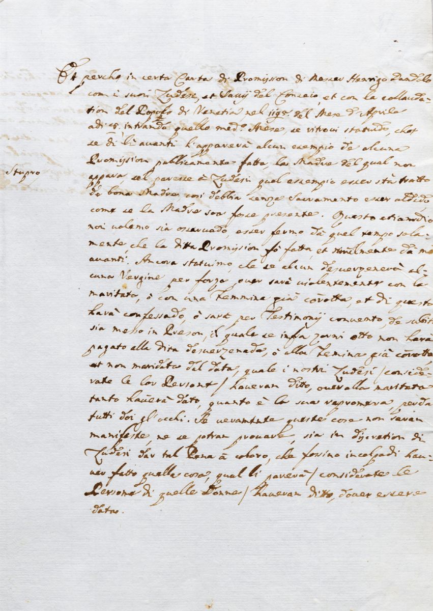 The Venetian Republic demonstrates also in this matter a legal openness and a not indifferent social sensitivity, a sign of a a free society which, however, knew how to regulate certain matters and adopt adequate penalties for the various crimes, often aimed at decisively protecting the rights of the weakest. & nbsp; & nbsp; & nbsp;