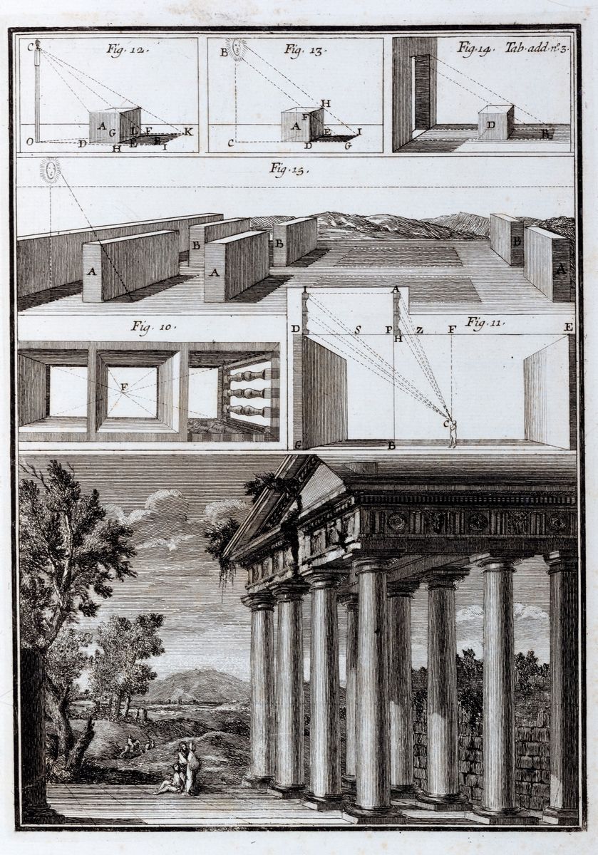 Ricca edizione che si struttura come un vero corso architettonico di base. Il ricco apparato iconografico di tavole e di illustrazioni correda l'intero testo che contiene, fra le altre cose, un saggio di geometria, una vita dell'autore, un testo di prospettiva e un glossario dei termini architettonici. Giacomo Barozzi fu un notabile architetto manierista del XVI sec. che successe a Michelangelo presso la corte papale; di notevole rilevanza la sua nota distinzione dei cinque ordini architettonici su cui si concentrano diverse tavole dell'edizione. Le illustrazioni riportano inoltre esempi di prospettiva, capitelli, frontoni e caminetti alla maniera del Piranesi.