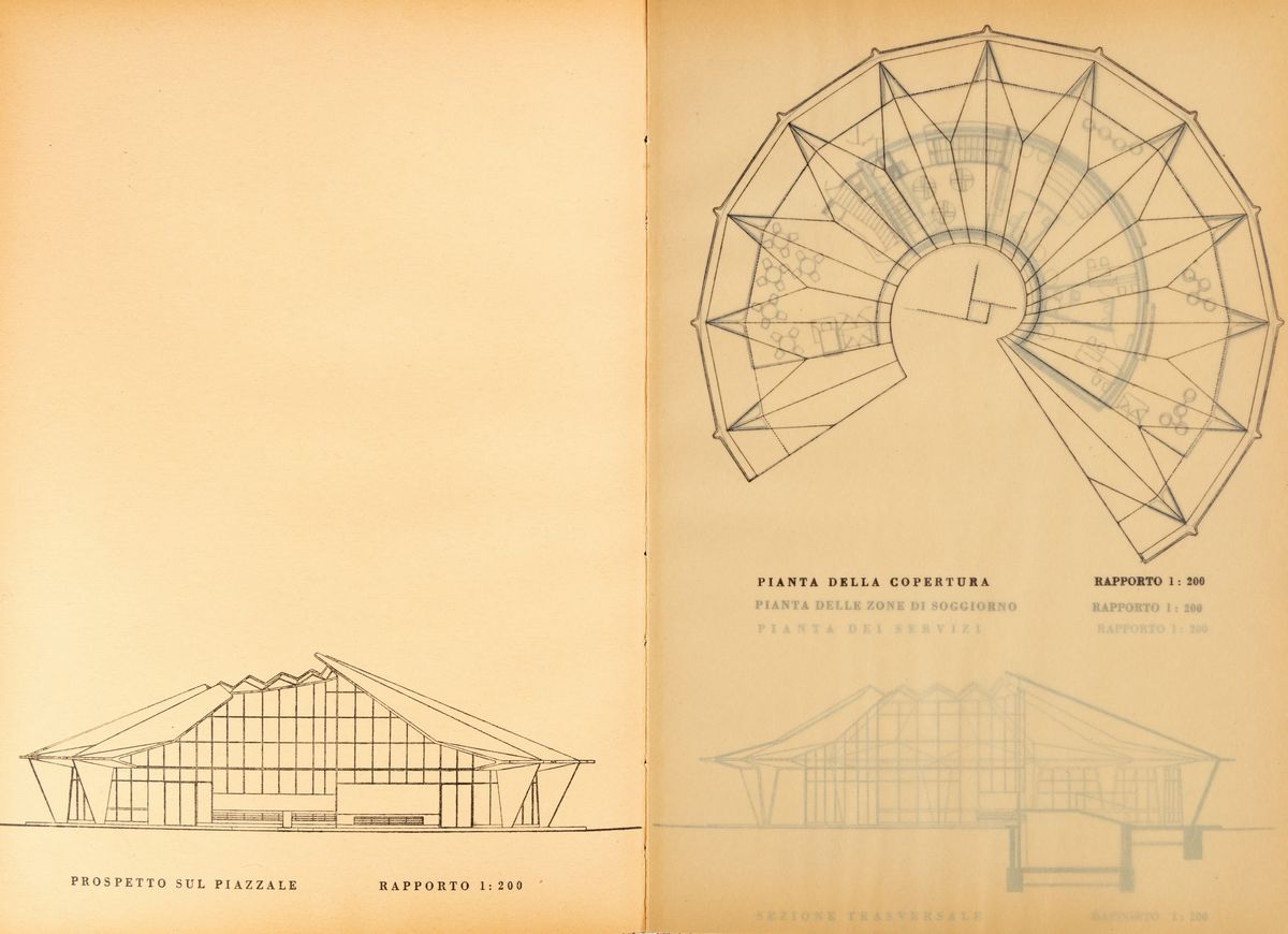 "Questa architettura è il risultato della collaborazione fra architetti ed ingegneri, a cui si unirono, secondo il programma della X Triennale, pittori e scultori. Tale collaborazione è stata attuata con identità di vedute e aspirazioni. Le decorazioni sono state eseguite dai pittori Bruno Munari e Mauro Reggiani e dallo scutore Francesco Somaini. La forma di questo padiglione, nell'intento dei progettisti, non doveva essere altro - tenute presenti le attuali possibilitàò del cemento armato - che lo specchio sincero della funzione alla quale l'edificio stesso era destinato: un «centro comunitario in un parco pubblico" (pag. 20).