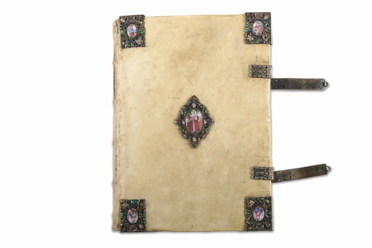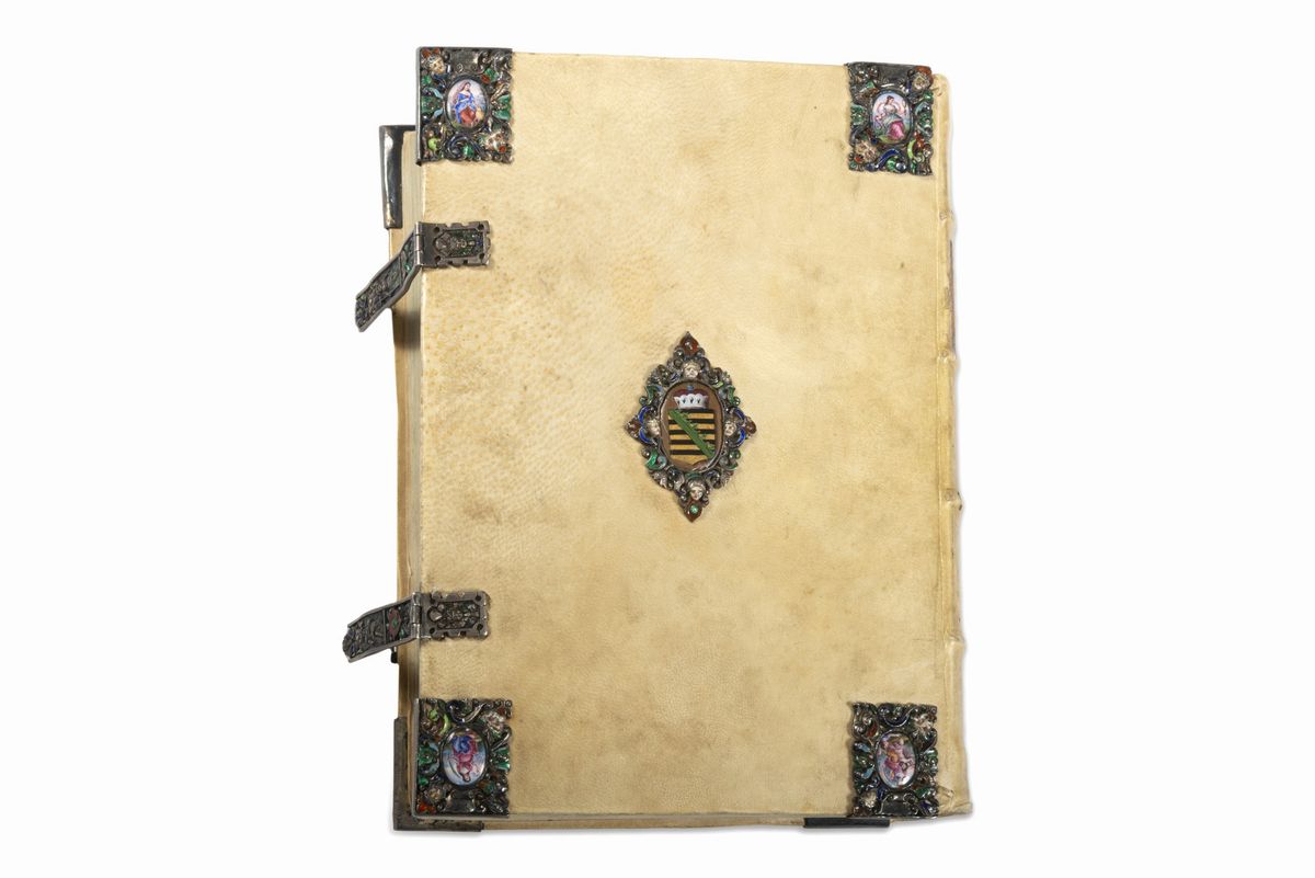 The copy is enriched by the splendid binding of the goldsmith Melchior Dinglinger , goldsmith of the court of King Johann Georg IV and King August I of Saxony. & nbsp; Many of his works can be found in the Grünes Gewölbe museum in Dresden.