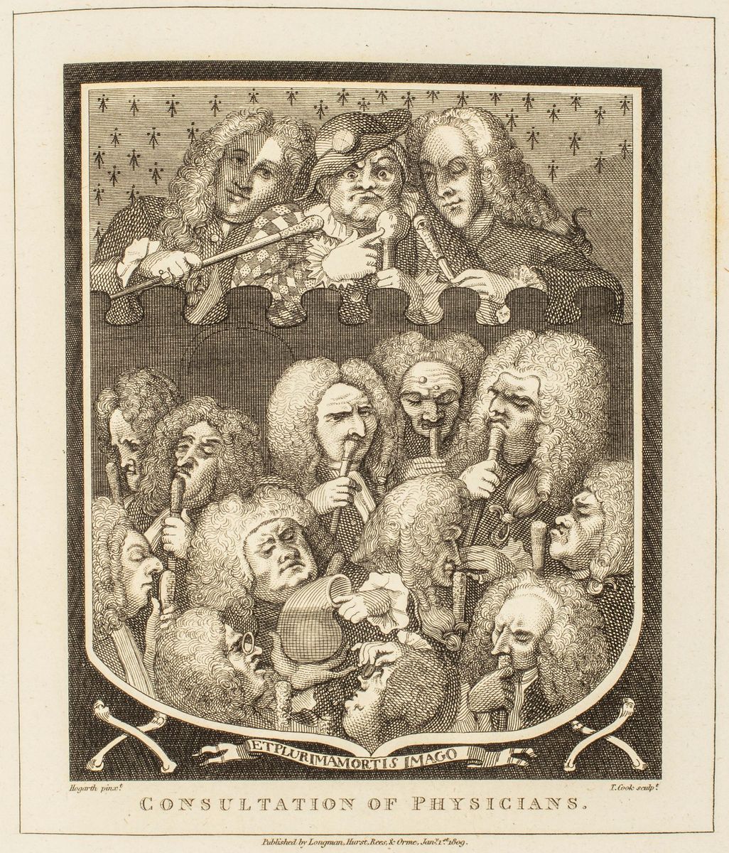 London, Longman, Hurst, Rees, Orme and Brown, 1813. In 4th. Portrait of William Hogarth engraved by Cook, with 160 engravings protected by vellum, slight blooms and marginal redness, & nbsp; coeval full leather binding, gold frame embossed on the plates, title within a gusset on the spine, small lacks and restorations on the spine, slight defects. Paper ex libris on the counterplate.