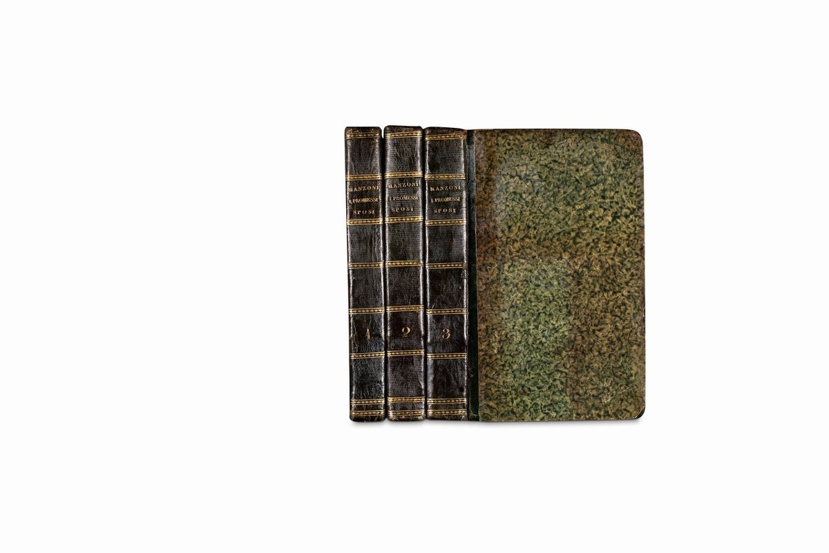 Original edition of the most important novel of Italian literature. Rare example of the first edition with the error on p. 378 line 13 of the third volume ("[of] this story"). Parenti, Manzoni Bibliography 1936, p. 35: "For those drawn before correction are very rare." & Nbsp;