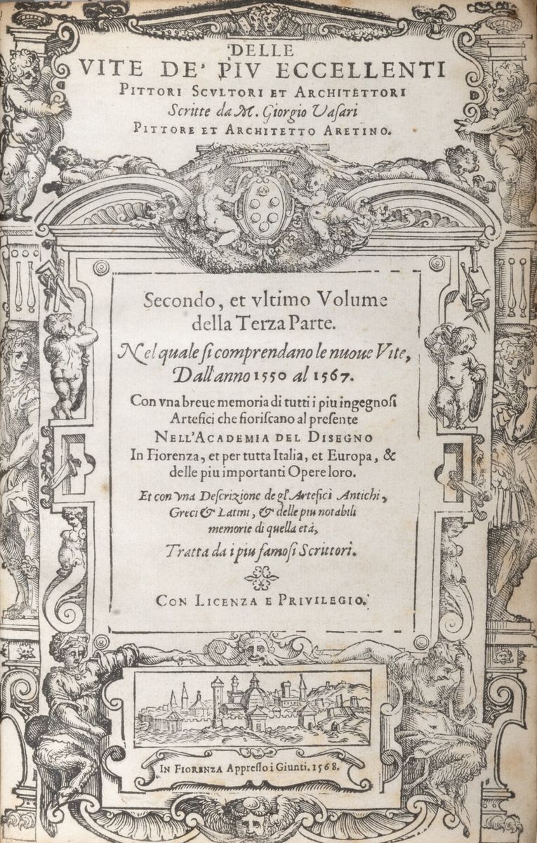 The Lives of the Most Excellent Painters, Sculptors, and Architects. Written by m. Giorgio Vasari painter and architect from Arezzo, again by the same artist and enlarged with their portraits and with the addition of the lives of the viui, & of the dead from the year MDL up to MDLXVII, 1568