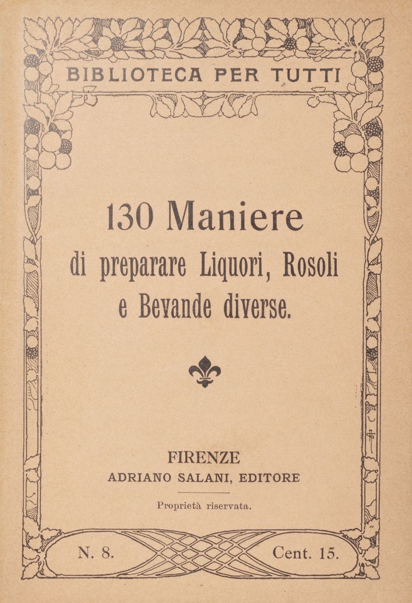 Complete series of the "Library for all" which includes 8 handy volumes: 130 ways of preparing liqueurs, rosoli and different drinks; 160 ways of cooking eggs and making sauces; 160 ways of cooking herbs and legumes; 150 recipes for meat dishes; 130 ways of cooking poultry and game; 140 ways of cooking meat; 130 ways of making soup; 140 ways to make Sweets