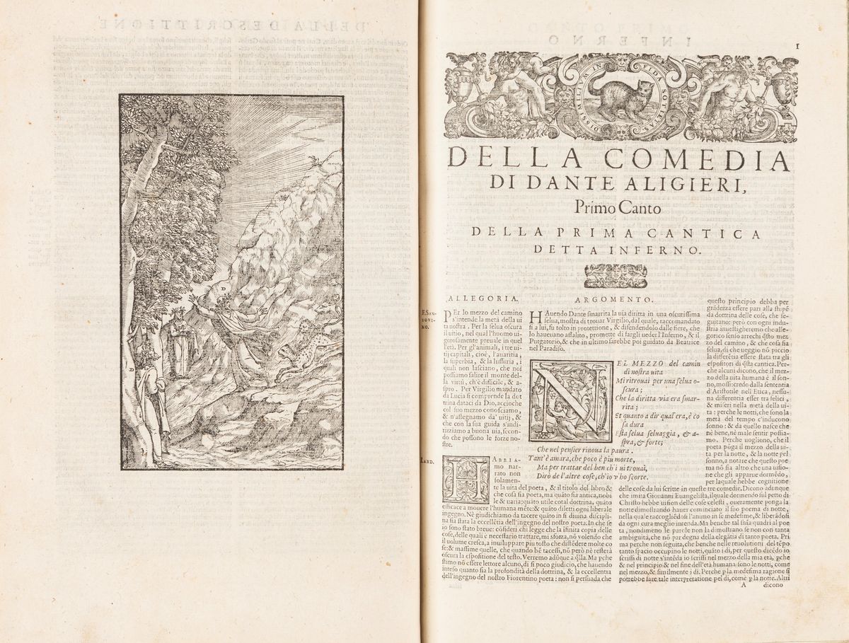 Reprint of the 1564 edition, the first edited by Sansovino, on the Aldino model of 1502, famous because < b>collects for the first time the comments of Landino, who appeared in Florence in 1481, and of Vellutello, published for the first time by Marcolini in 1544. The rich iconographic apparatus is taken from the same edition of Marcolini.