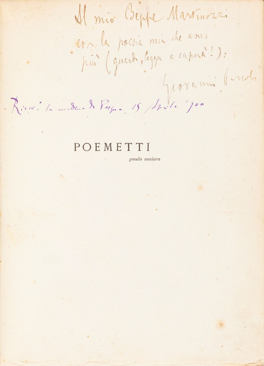 Exemplary enriched by the autograph dedication of the author, to his friend Giuseppe Martinozzi.