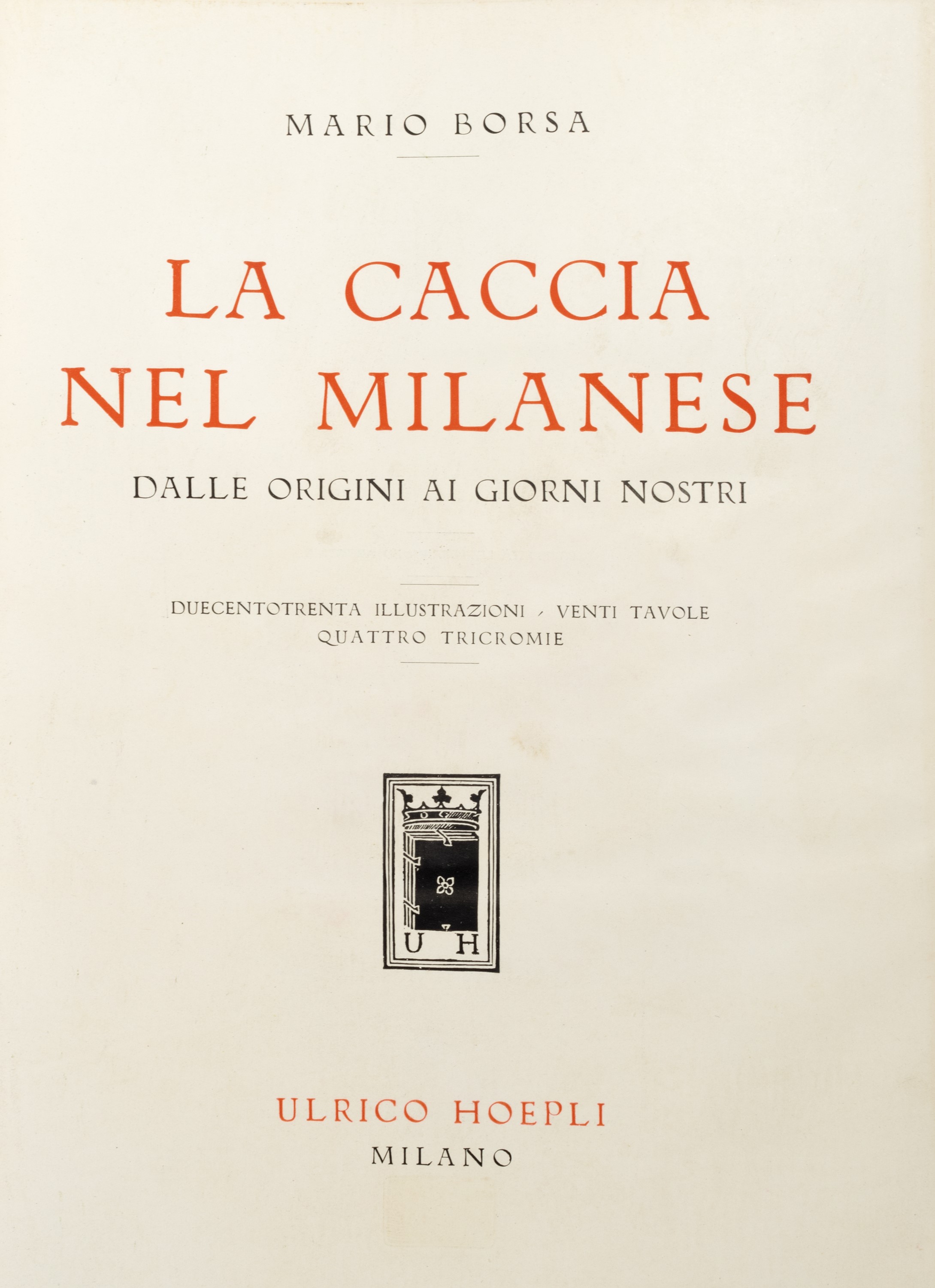 Milan, Hoepli, [1924]. In 4th. With 230 illustrations in the text, 20 tipped-in plates and 4 applied tri-colors, all protected by tissue paper, editorial binding in full leather with gilt titles, bas-relief decorations, 8 brass studs, gold top cut.