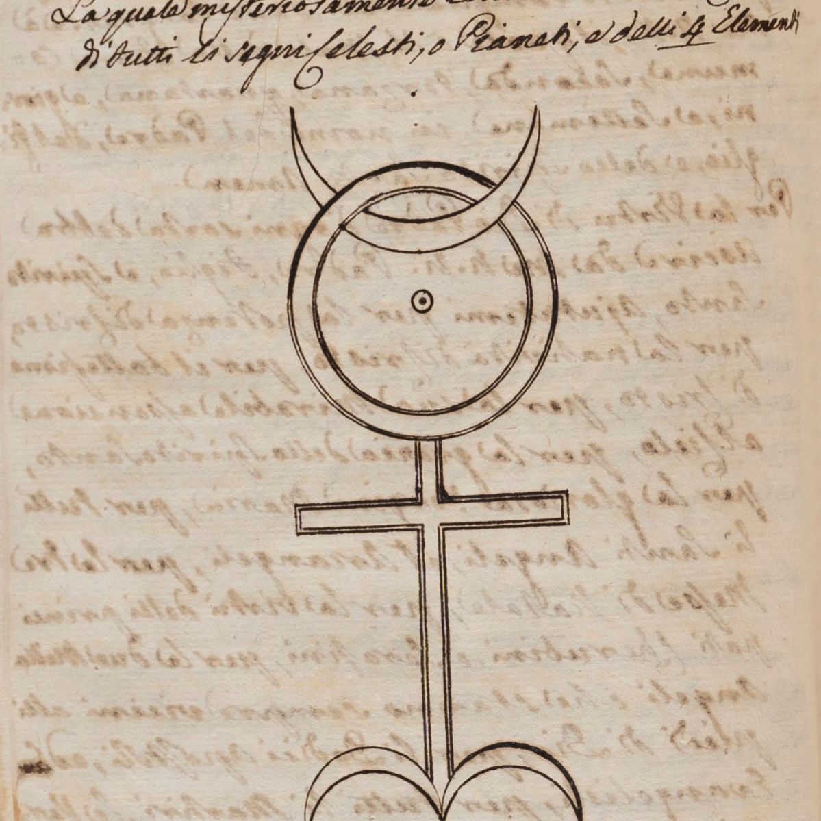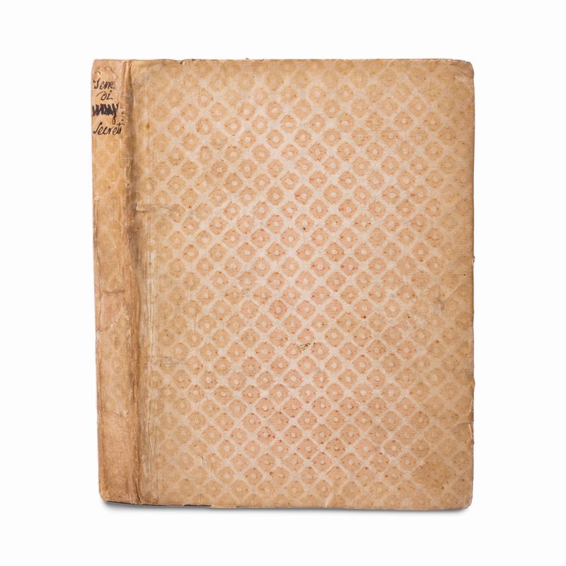 Paper manuscript of 105 cc. n.n. in 8°, 218 x 162 mm., end of the 18th century, written by at least two anonymous hands on different papers, coeval binding in printed paper decorated with diamonds, title in ink on the spine, innumerable magical figures and characters in the text. Embossed noble stamp on the second page.