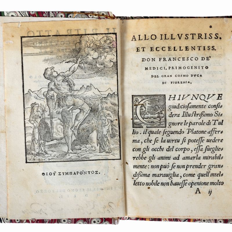 In Venice, for Giovanni Maria Bonelli. At the sign of Pozzo, 1552. 16th, allegorical engraving on the verso of the title page, 107 cc. number, 1 c. nos. Figured initials. Printer's mark on title page. Modern hardcover, label, title and decorations in gold on the spine, colored edges.