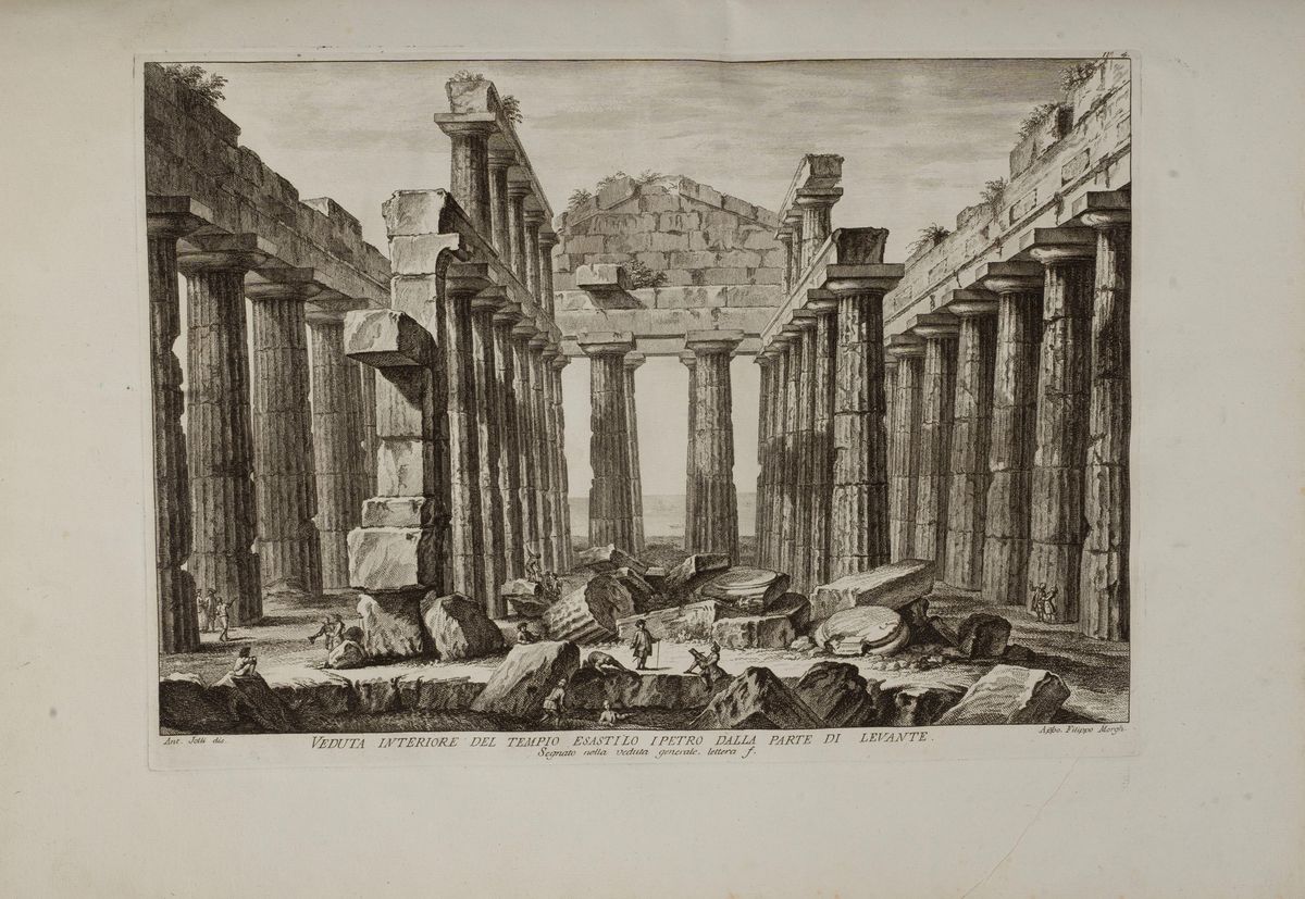 Folio, 10 plates, etched by Filippo Morghen, based on a design by Antoni Joli, Filippo himself and his son Raffaele. The first plate contains the dedication, from which the title and date are obtained, to the Baron of Baltimore, Peer of Ireland and Lord Proprietary of the Province of Maryland and Avalor in America. Binding mz. green morocco with gold corners, cords, title and friezes.