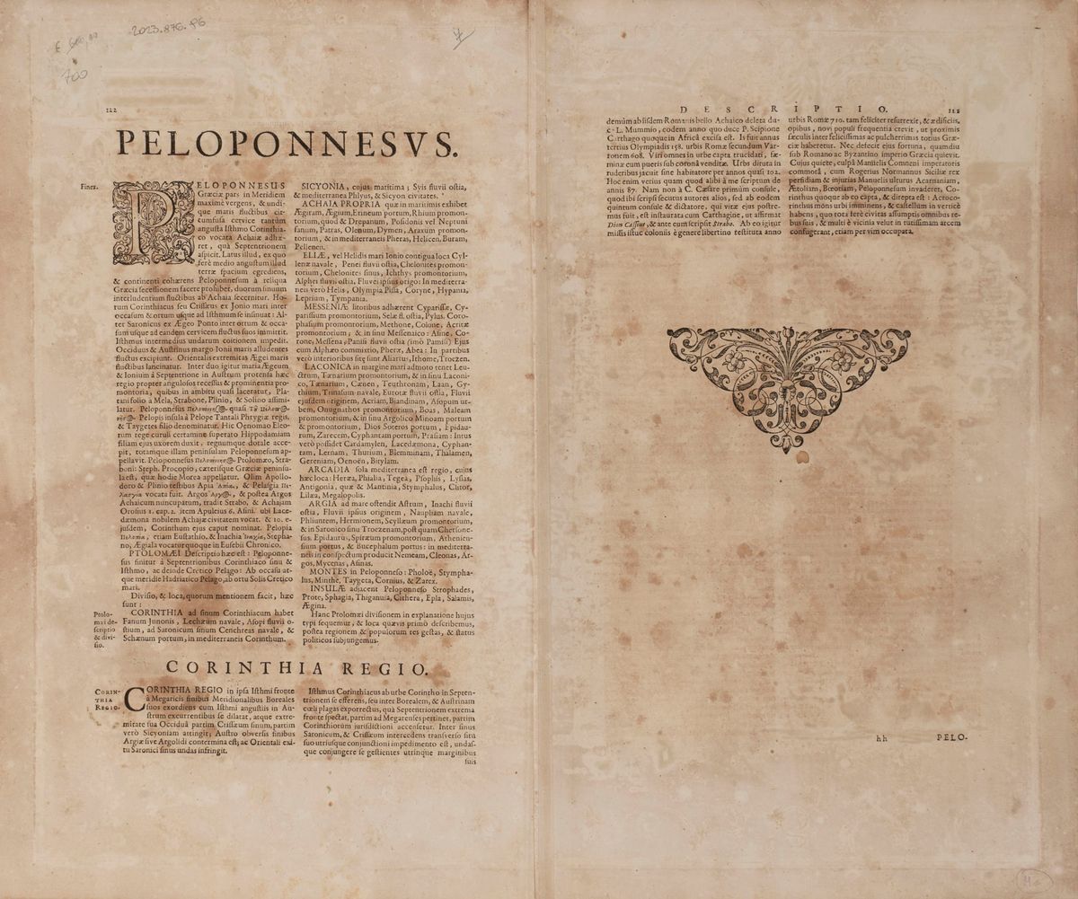 Copper engraving colored with watercolour, 1660. The paper is decorated with two artistic cartouches which contain the title and the milestone. Measures 53 x 45.5 plus margins. Latin text on the reverse. First edition of this rare map, in subsequent editions a completely different map was published both in graphics and ornamental figures.