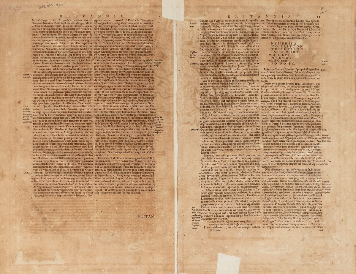 Amstelodami, Apud Ioannem Ianssonium. Copper engraving, ca 1640. Coeval colouring. Measurement cm. 43 x 54.5, wide margins. Title enclosed in artistic cartouche. Latin text on the reverse. The map depicts England, Scotland and Ireland. In a separate box at the top right the Shetland Islands are portrayed and at the bottom right you can see the coastal area of Belgium. At the top left, large scroll entirely watercoloured.