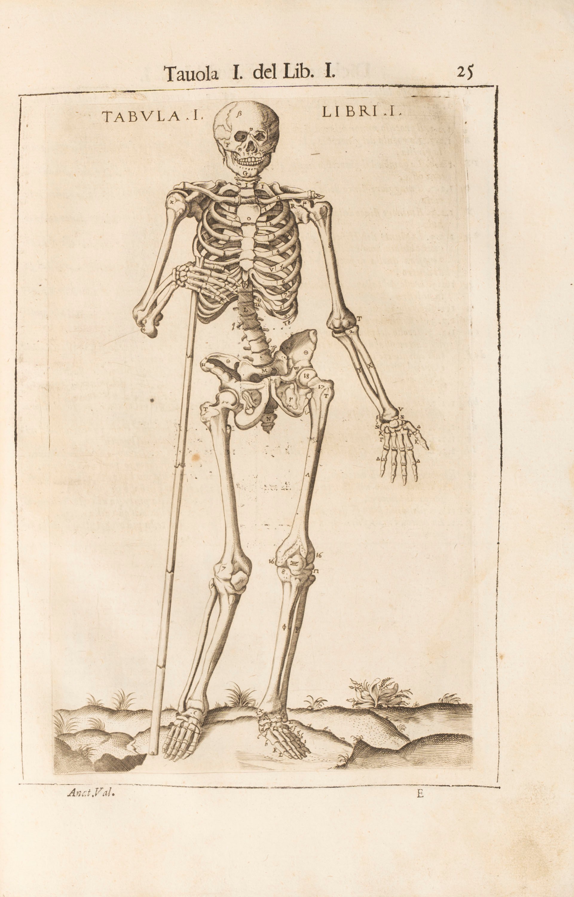 Venice. After Nicolò Pezzana, 1682. In 2nd. Title within a frame supported by two skeletons on the frontispiece engraved on copper, at the base a vignette depicting an anatomical lesson, full-page portrait of the author, with 44 full-page anatomical plates, small worm hole on the internal margin, sometimes restored, slight foxing , very small hole on the external white margin, two restorations on the last leaf, leather binding from a later period, gold title within a gusset on the spine.