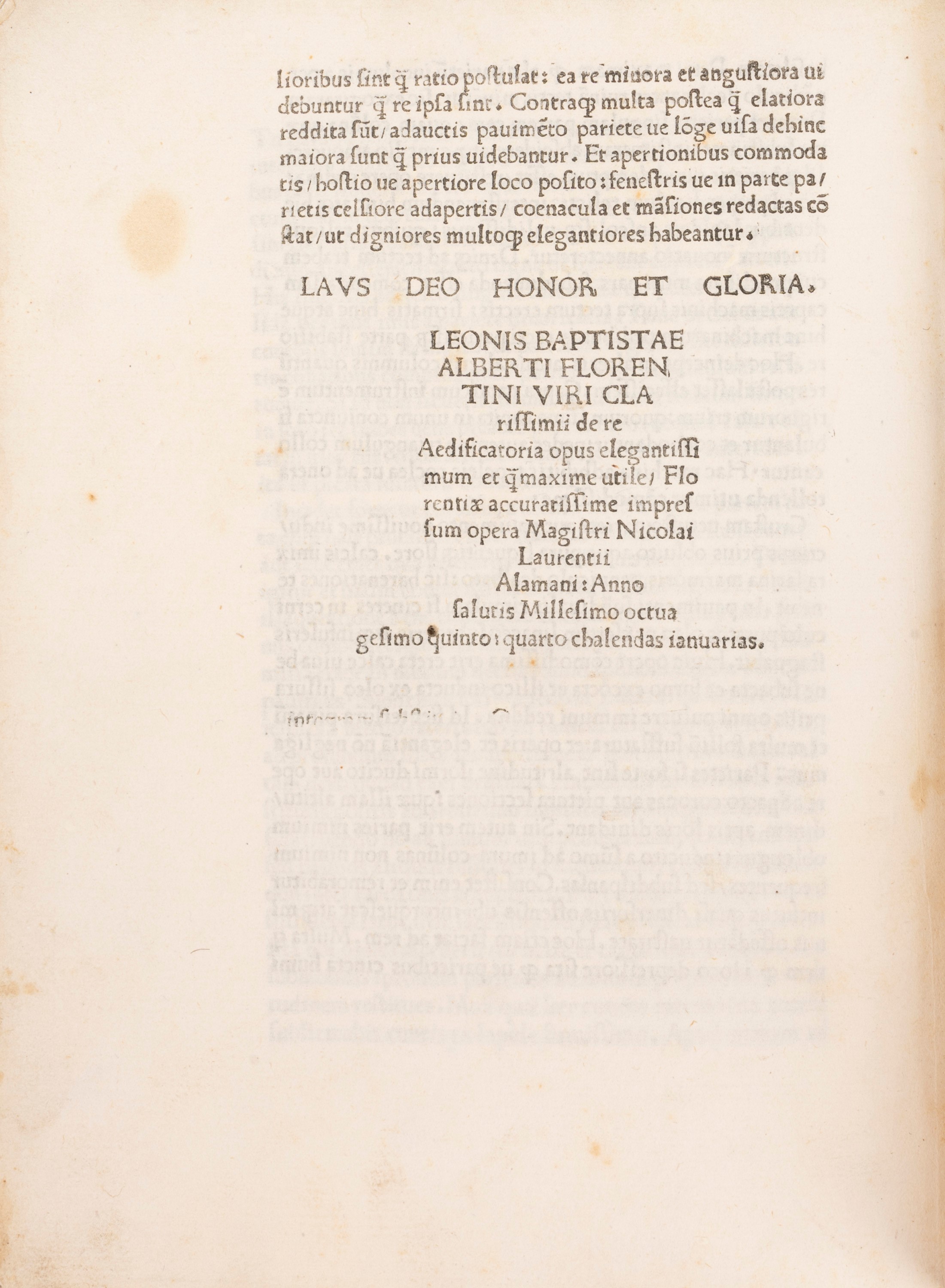 FIRST EDITION OF THE FIRST TREATY ON ARCHITECTURE IN PRINT.