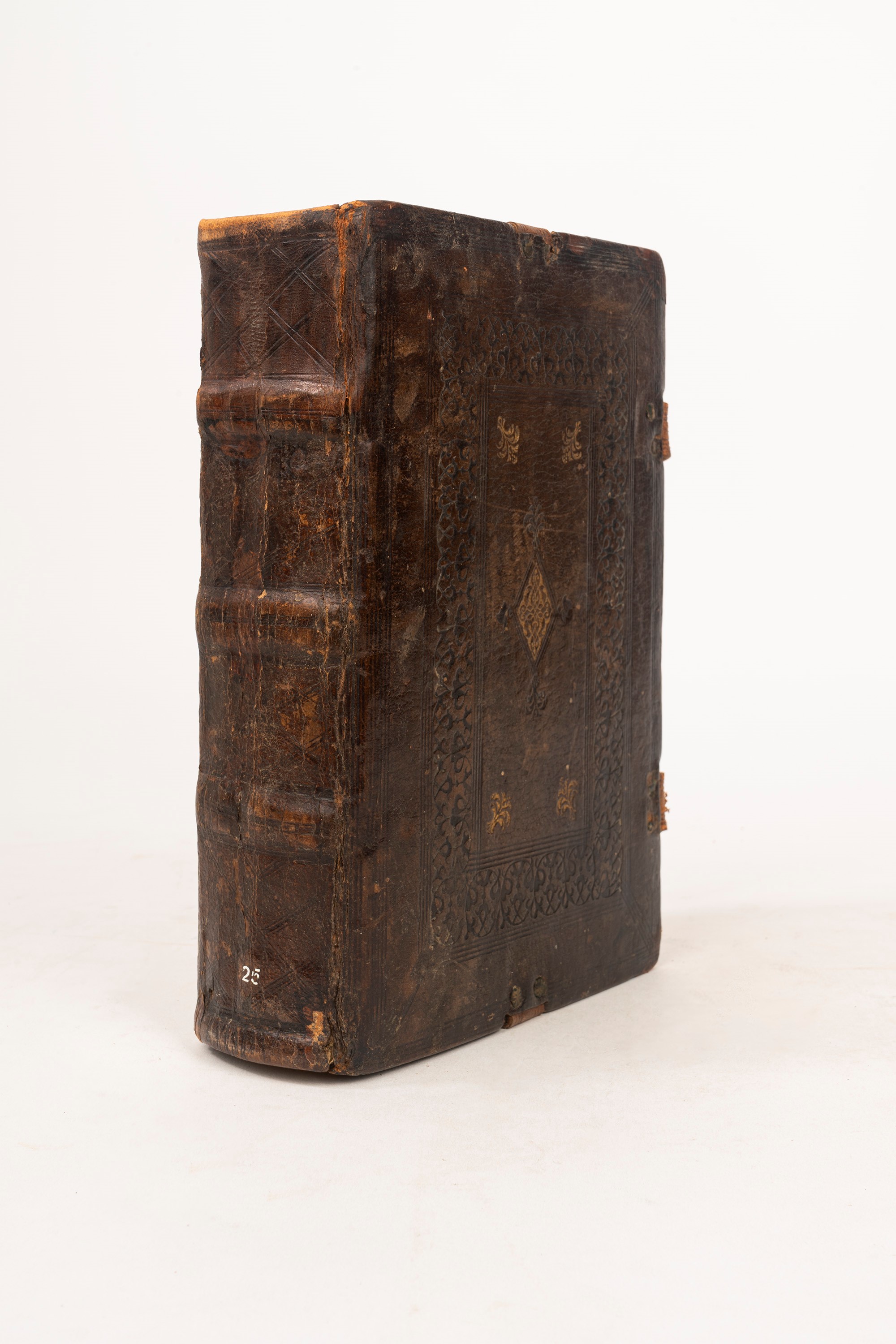 Venice: for miser Bernardino Stagnino from Trino de Monferra, 1520 adi XXVIII March. In 4°. Title page in red and black, in the centre image of St. Bernardino of Siena with radiant disk with Christ's monogram IHS and three mitres around, within a woodcut frame, woodcut illustrations at the beginning of each canto, marginal browning but overall an excellent example, CONTEMPORARY VENETIAN BINDING WITH DRY IMPRESSIONS AND GOLD DECORATIONS, GILT AND EMBOSSED CUTS , clasps and laces, small defects and losses on the spine and covers, traces of abrasion on the title page, slight marginal stains. Sheets on the back covers with sixteenth-century writing.